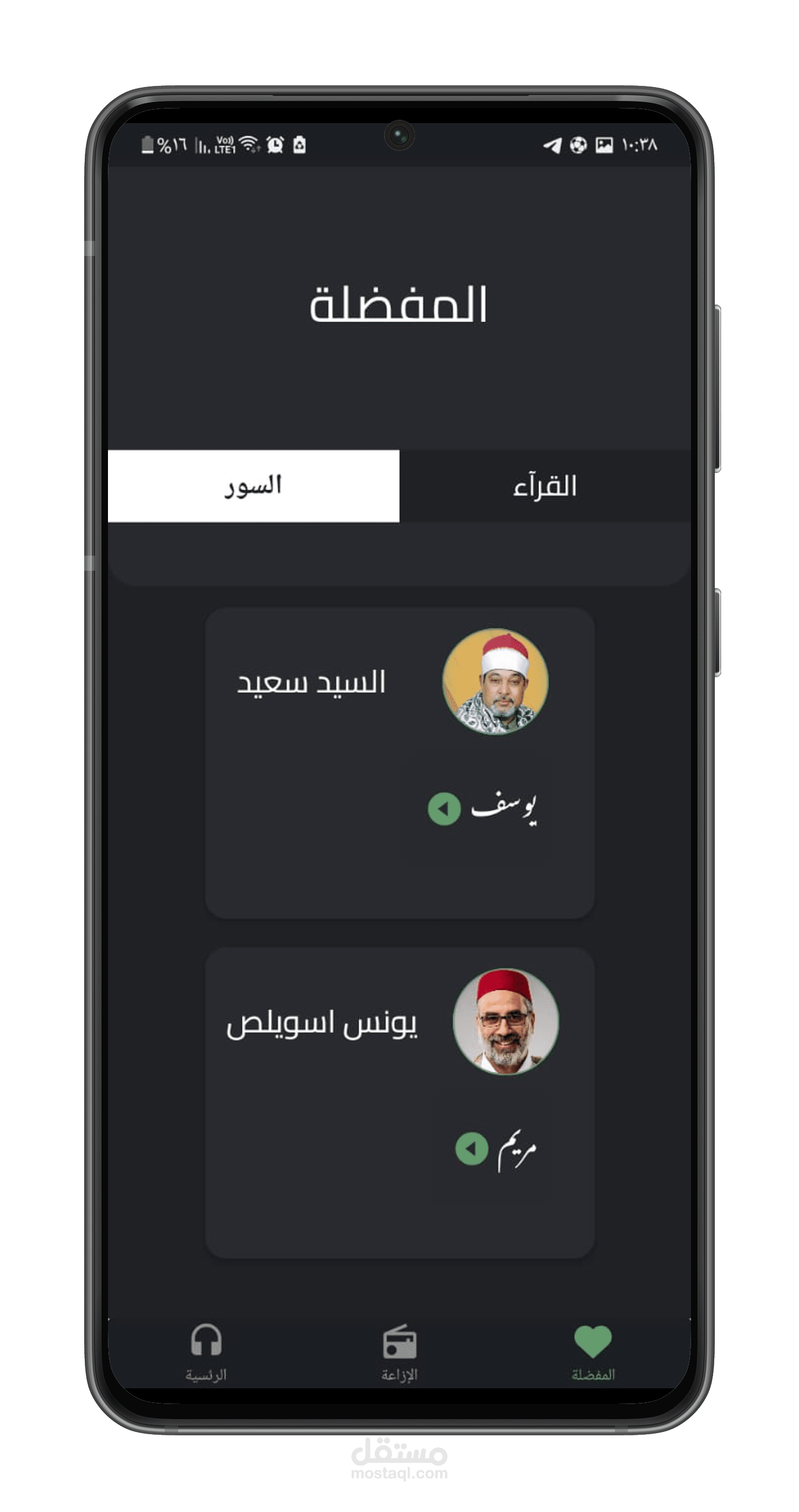 أضف السور أو القراء لقائمة المفضلة بضغطة واحدة