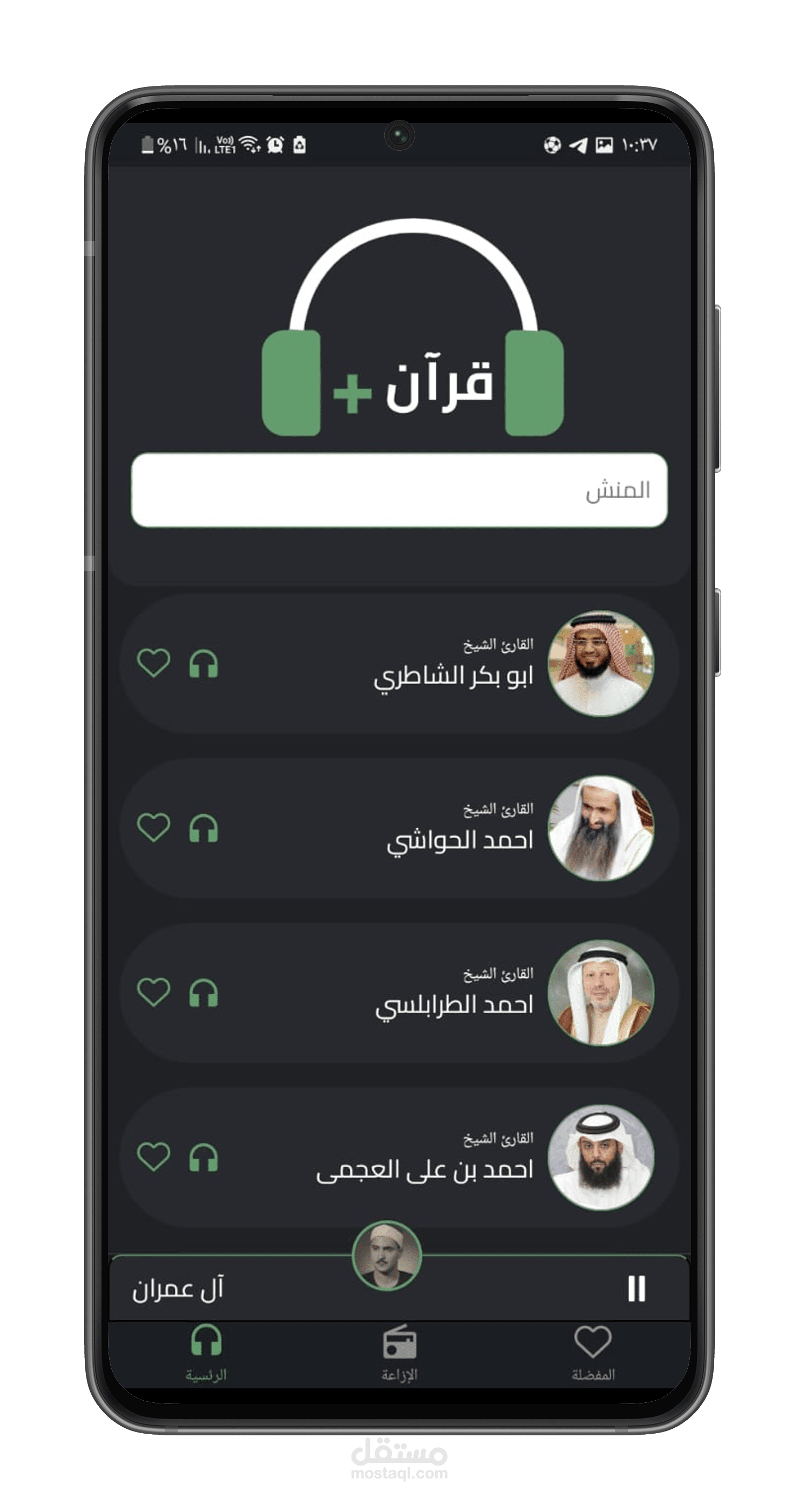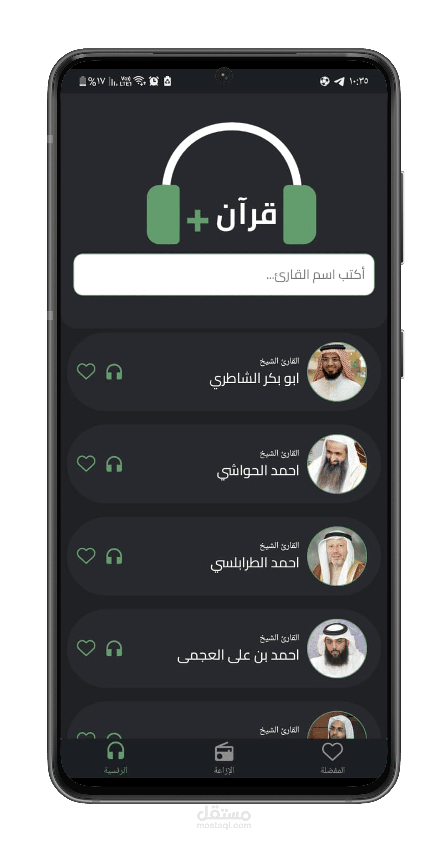 كل قارئ داخل التطبيق متاح بقراءته الكاملة وبجودة صوت عالية