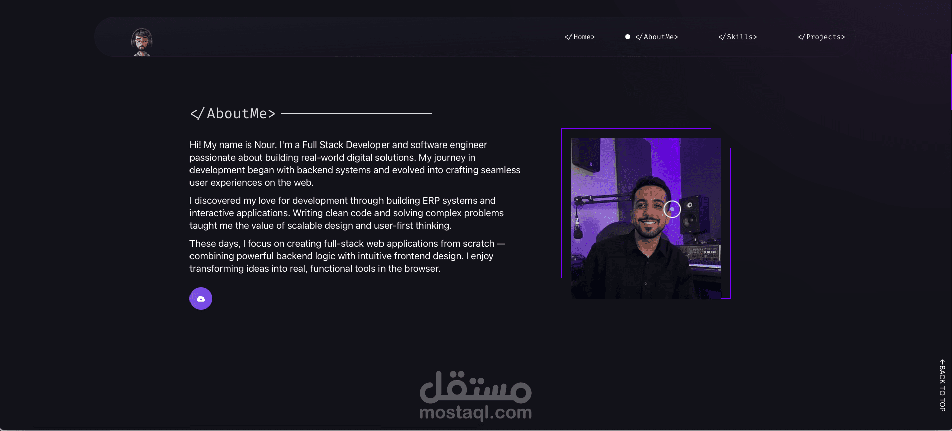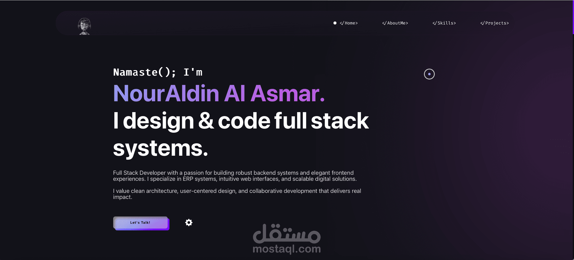 الهدف من هذا المشروع ليس فقط عرض المشاريع السابقة، بل إعطاء الزائر انطباعًا حقيقيًا عن “كيف أعمل”، “كيف أفكّر”، و”كيف أتعامل”. حاولت أن أترك مجالًا لكل من يزور الموقع أن يشعر بأنه يتحدّث إلى شخص حقيقي، ليس مجرد منفّذ أو كود خلف الشاشة.