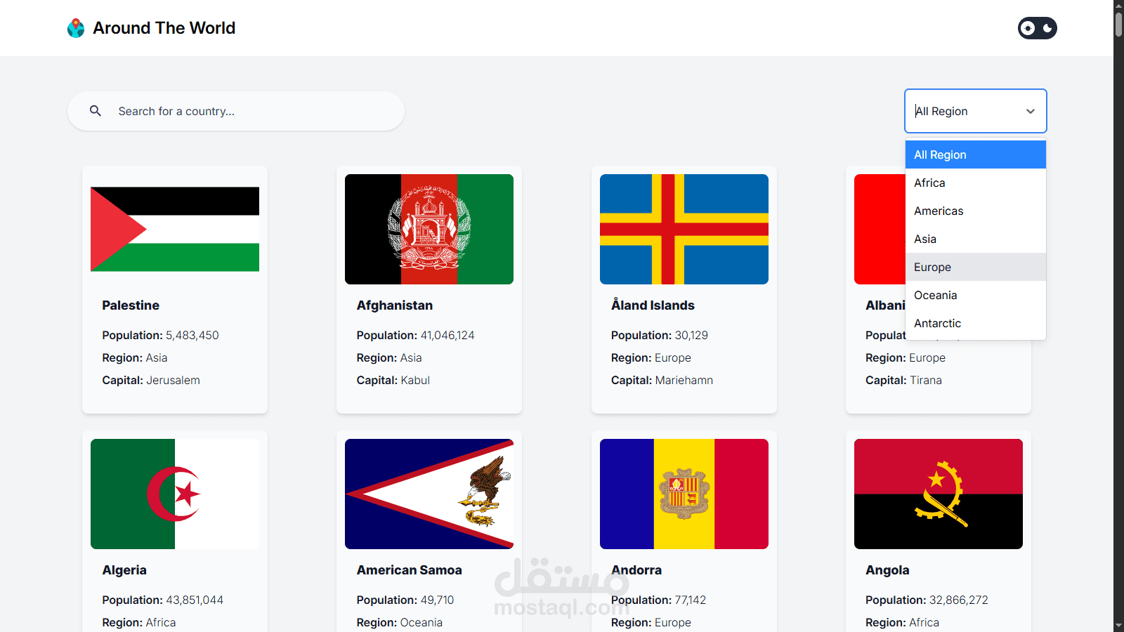 Around the World is an interactive website that provides detailed and structured information about all countries across the globe. Whether you're a student, traveler, or simply curious about world geography, this platform offers everything you need to explore nations — one country at a time.