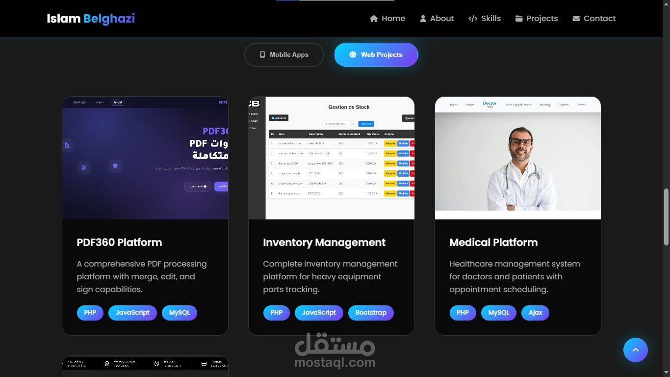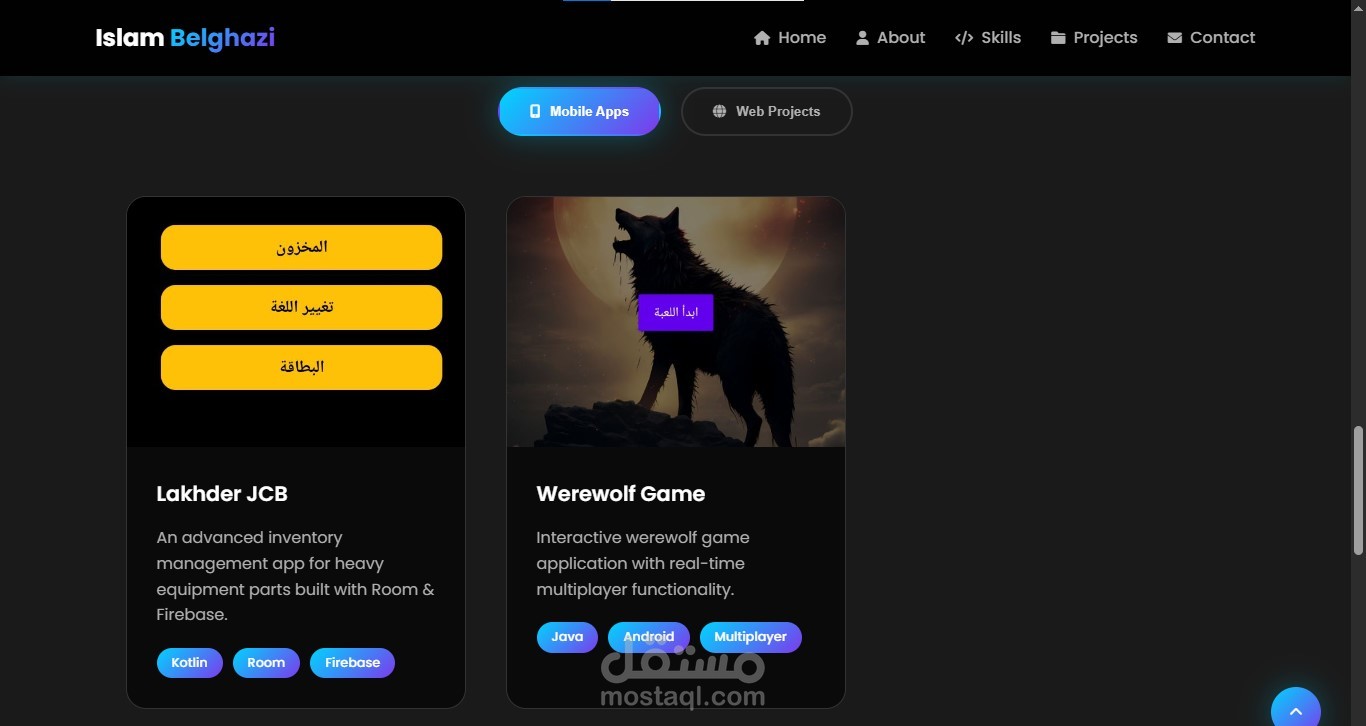 أقسام مخصصة لعرض المشاريع (تطبيقات – مواقع ويب)