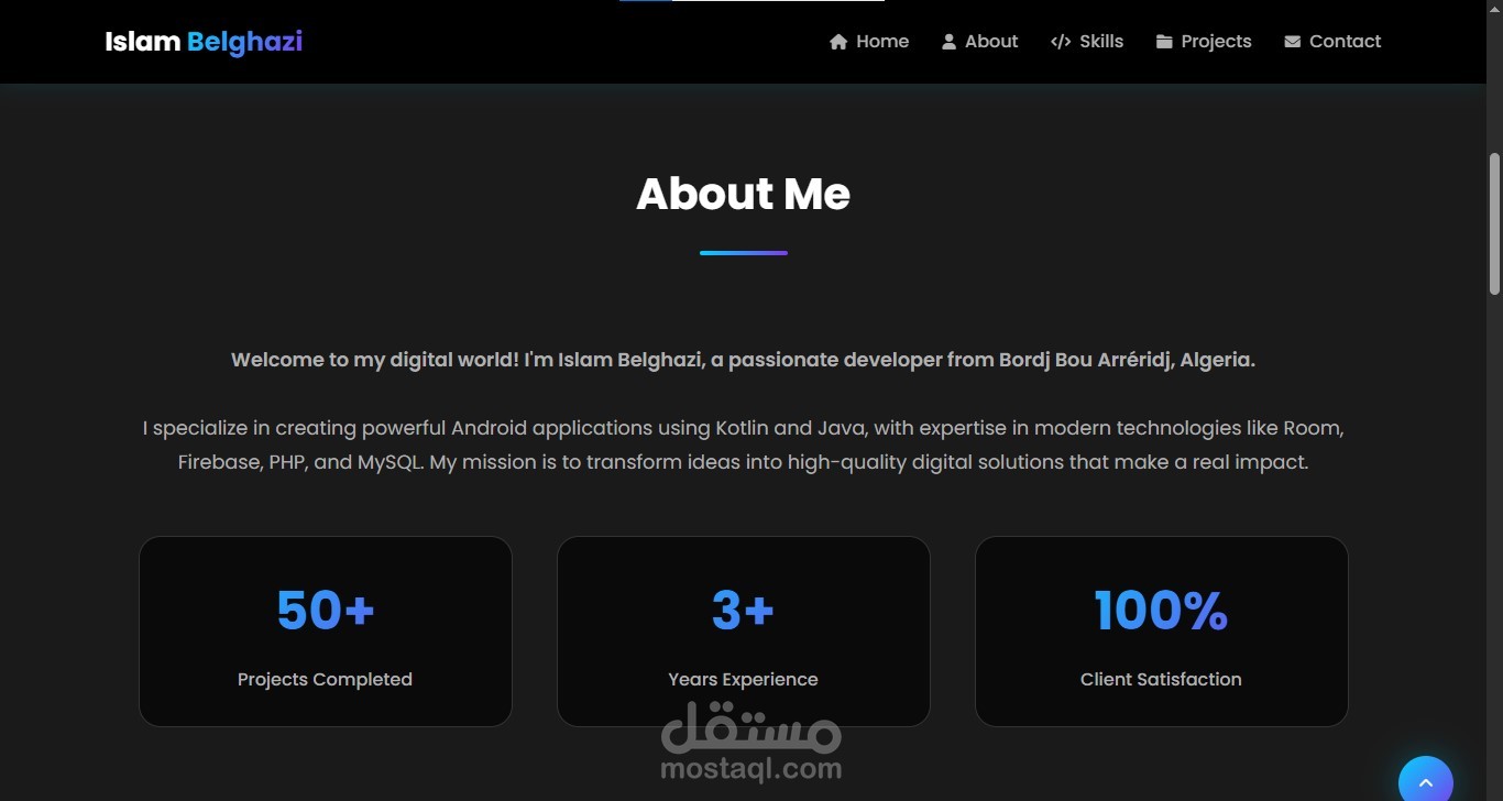 عرض مهاراتي، وخبرتي، وأعمالي السابقة لجذب العملاء أو فرص العمل، وتسهيل التواصل المهني عبر واجهة بسيطة وفعالة.