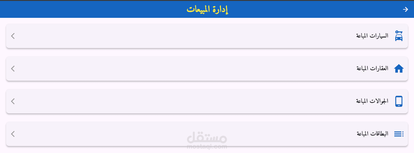 صفحة ادارة المبيعات لمعرفة كلا من ( السيارات المباعة و الجوالات المباعة و العقارات المباعة والبطاقات المباعة ) كلا منها على حدة فى صفحة منفردة.