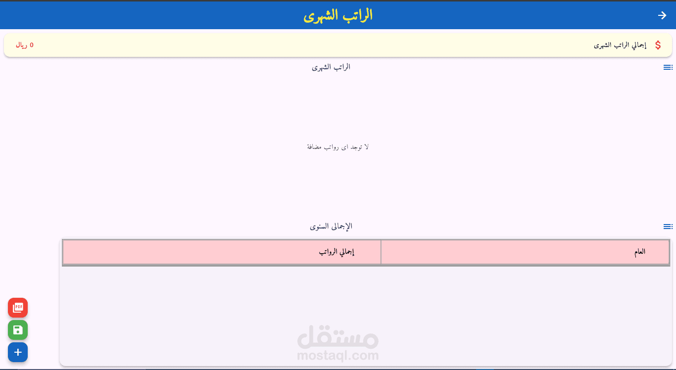 صفحة الراتب الشهرى لمعرفة اجمالى الراتب لكل شهر و اجمالى الراتب كل عام واجمالى الاعوام .