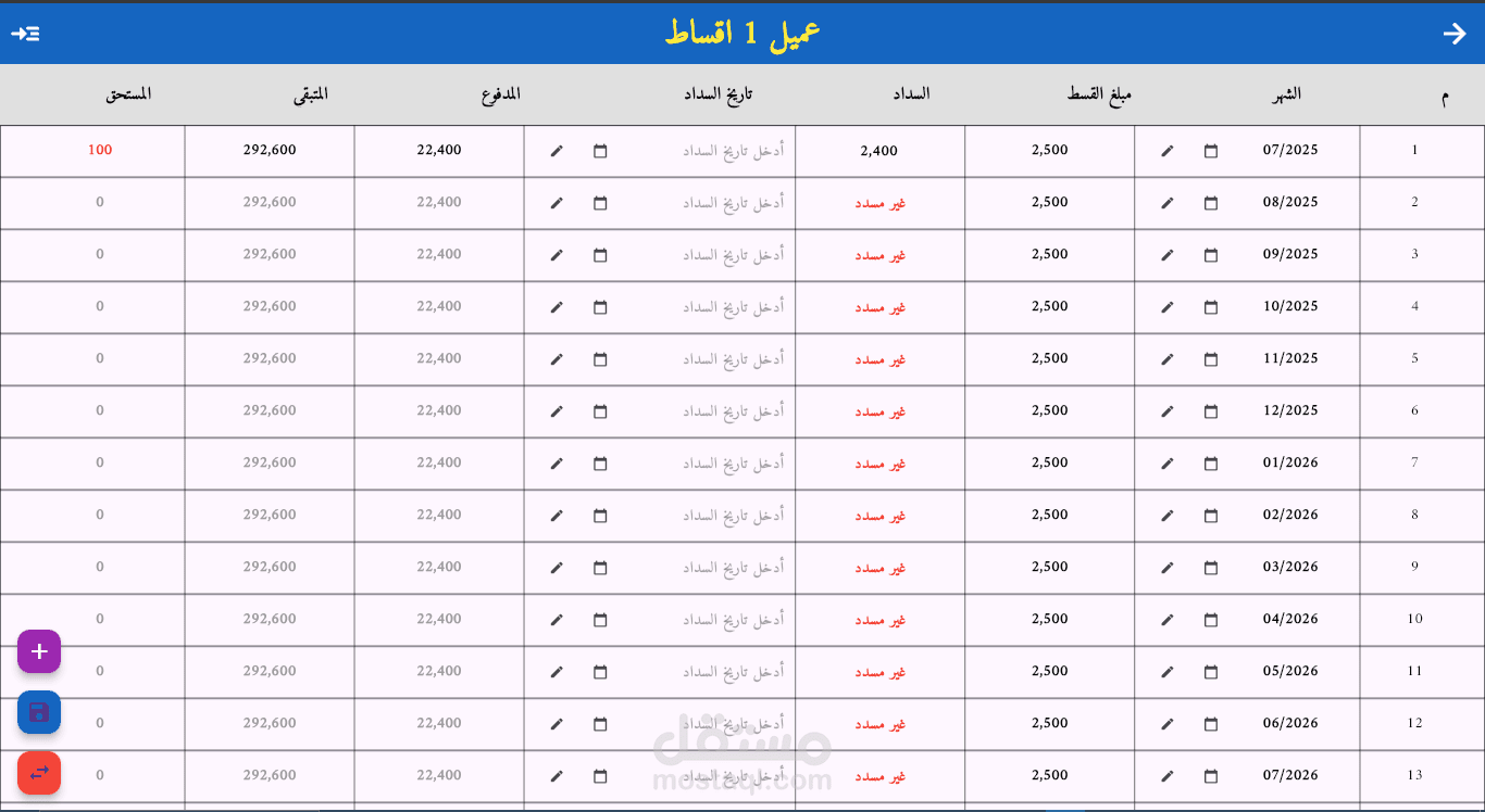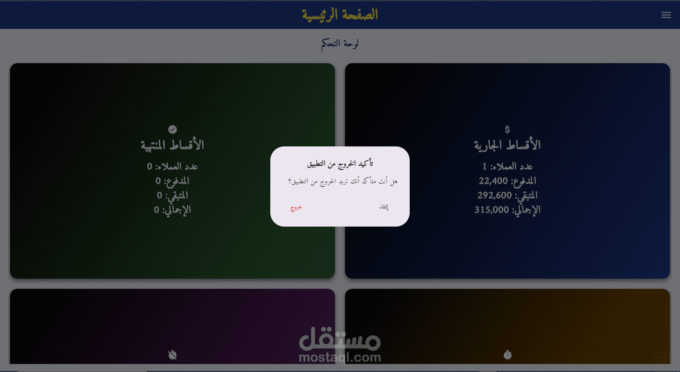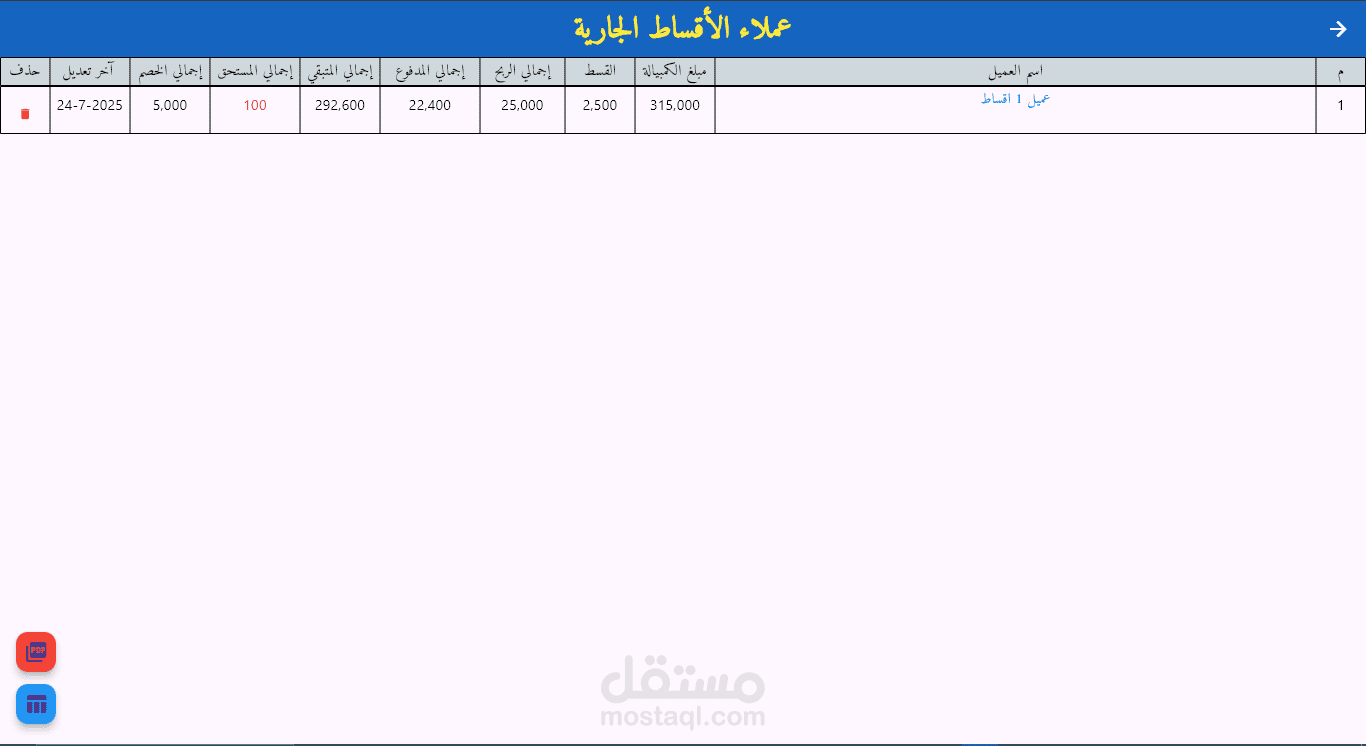 صفحة لادراة القروض الحسنة ومتابعة حالة سدادا العملاء.