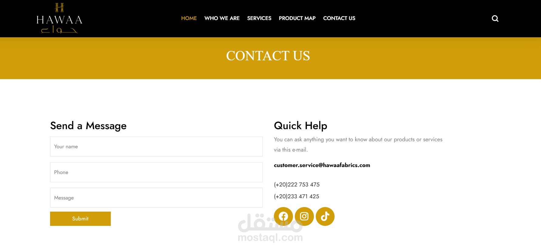 قمت بتصميم وتطوير موقع Hawaa Fabrics كمتجر إلكتروني متكامل باستخدام ووردبريس + WooCommerce، مع التركيز على إبراز المنتجات بطريقة جذابة وسهلة التصفح. تضمنت المهام التي نفذتها: