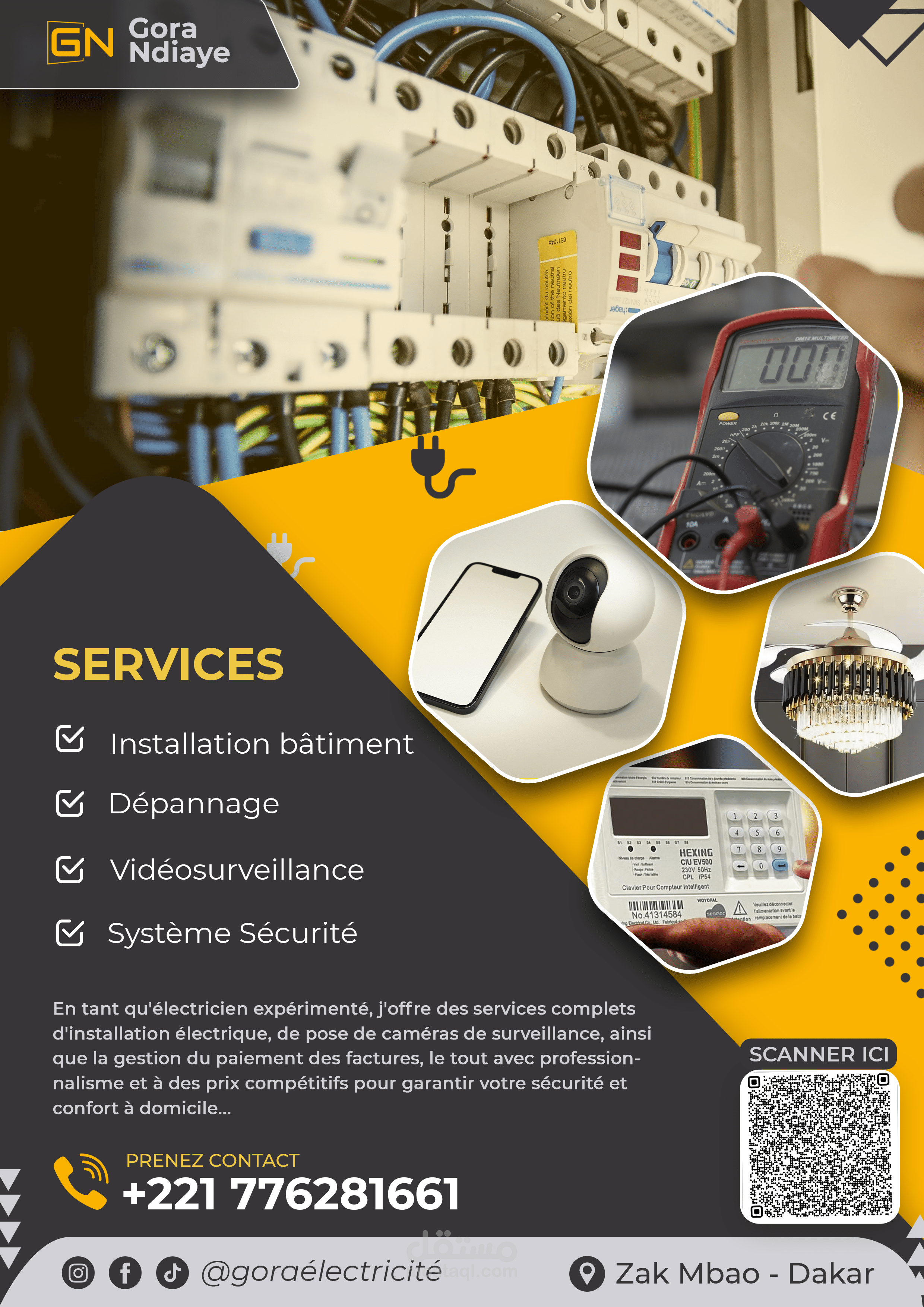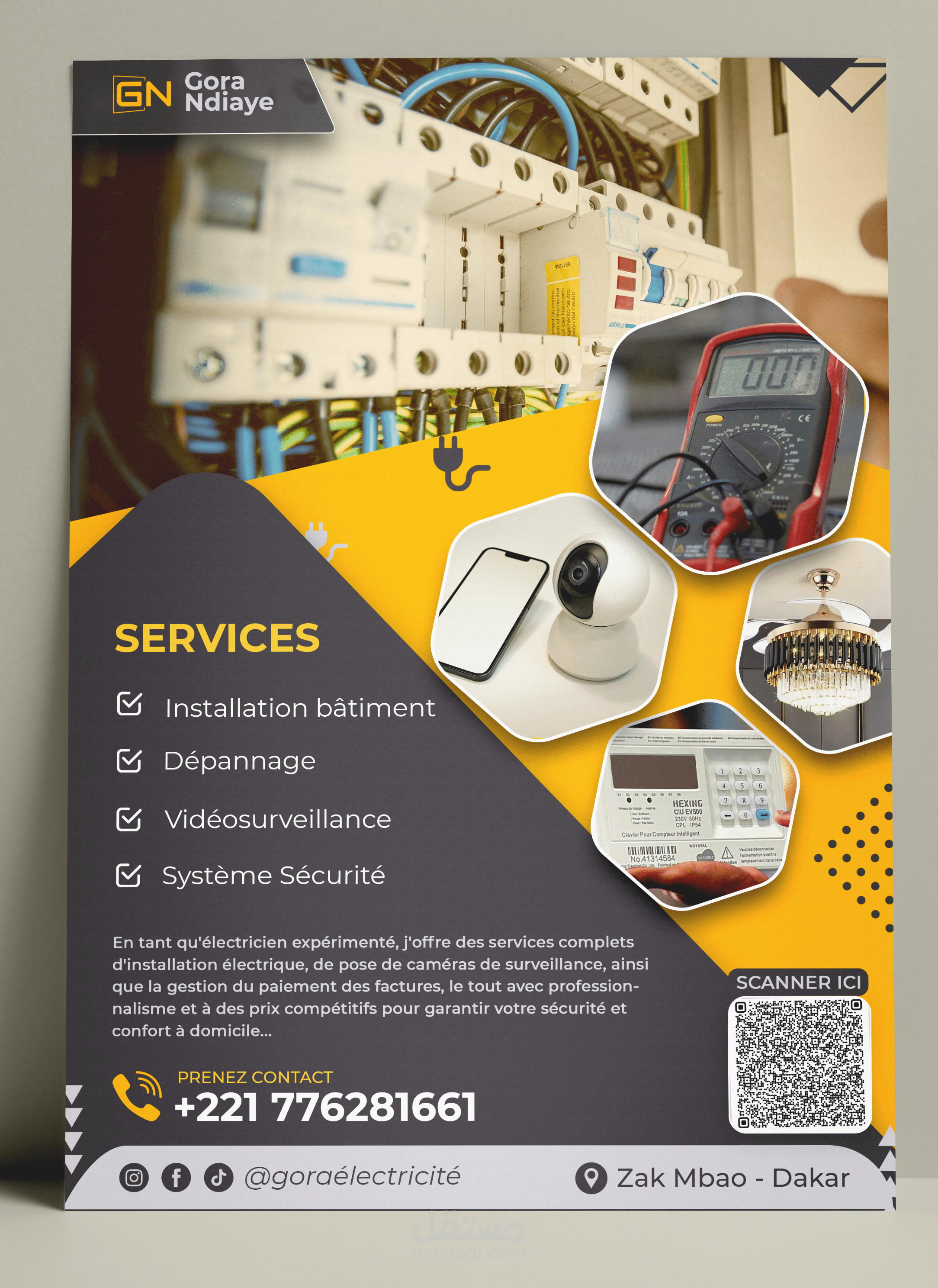 تصميم منشور دعائي احترافي يُبرز خدمات كهربائية متكاملة تشمل:
