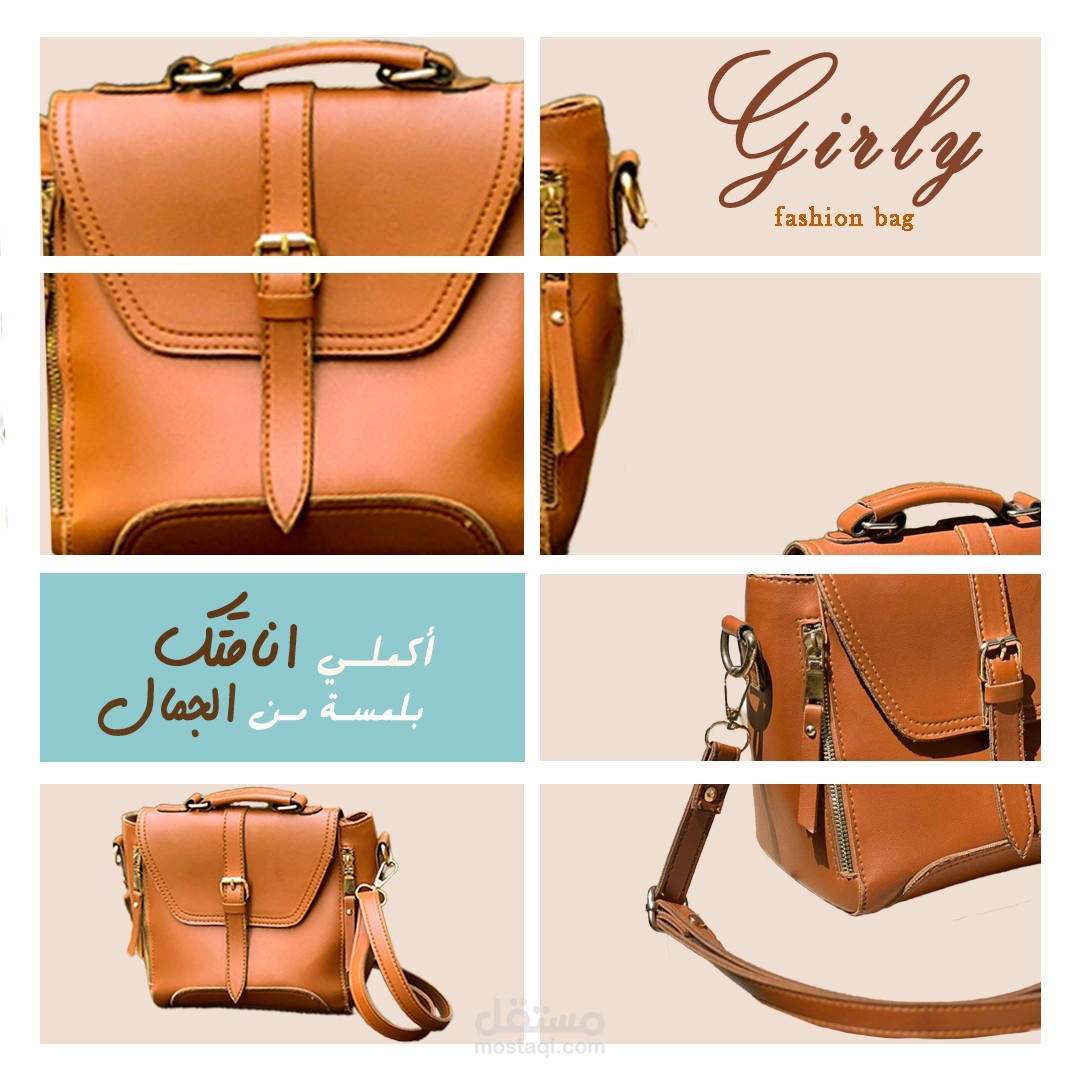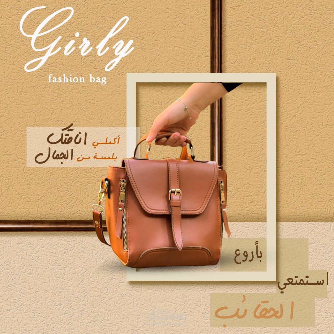 تصميم بوستر دعائئي لحقيبة نسائية وتم استخدام الالوان المناسبة مع الحقيبة
