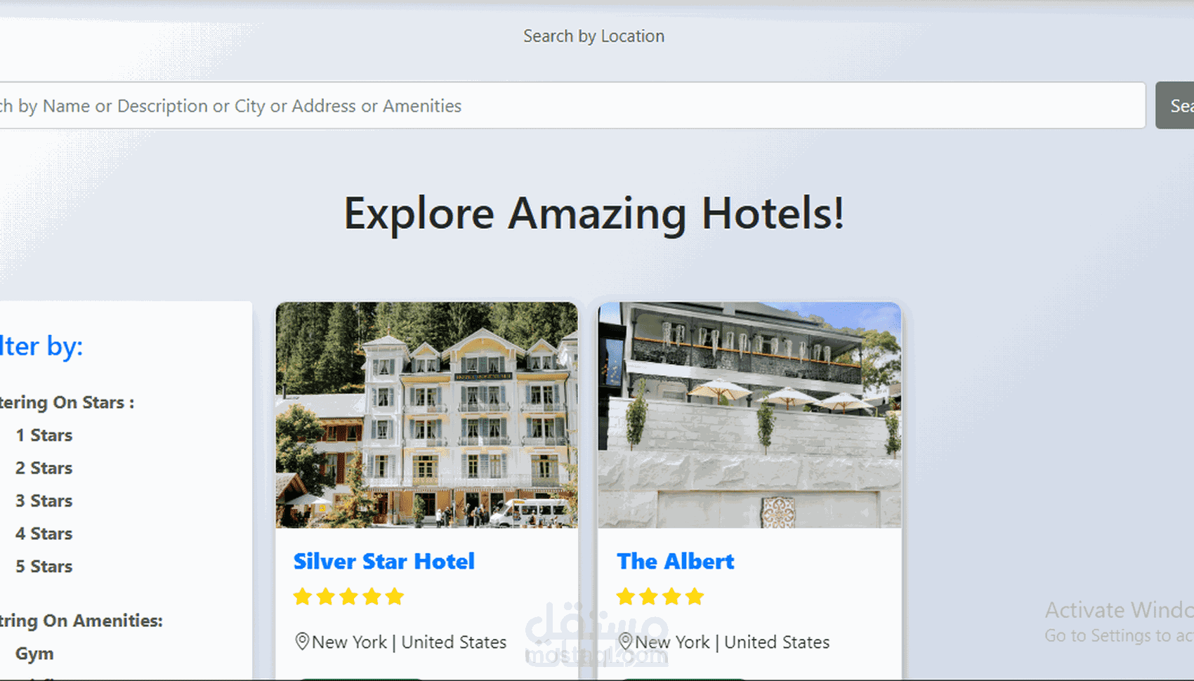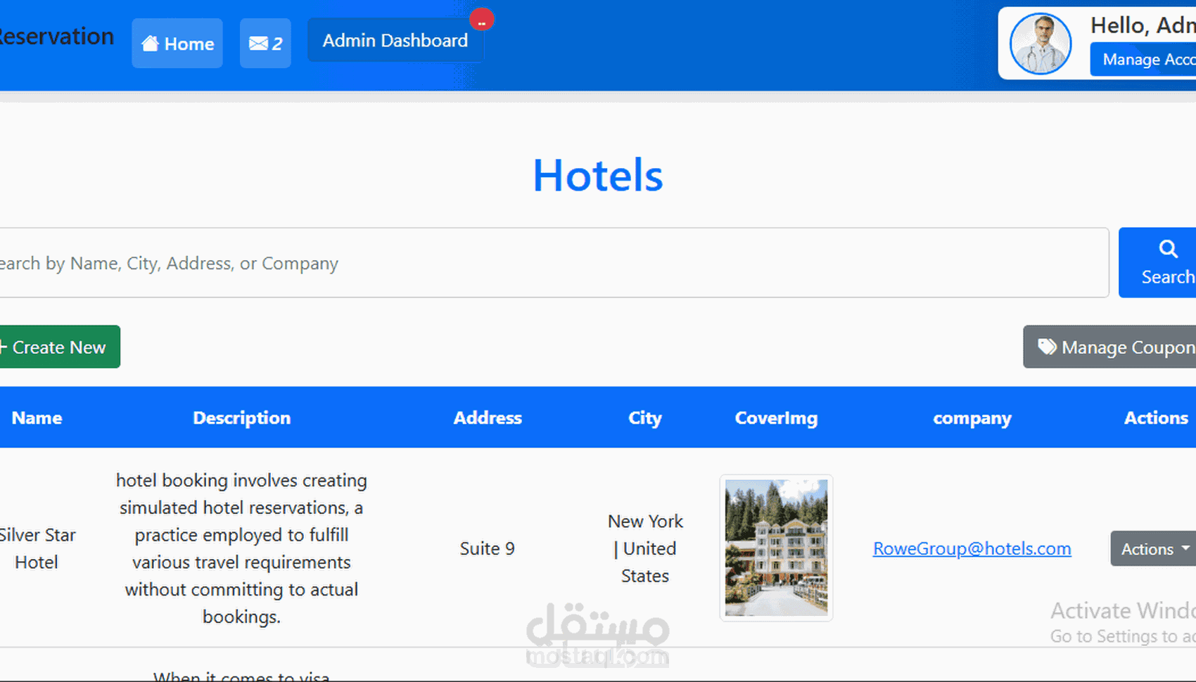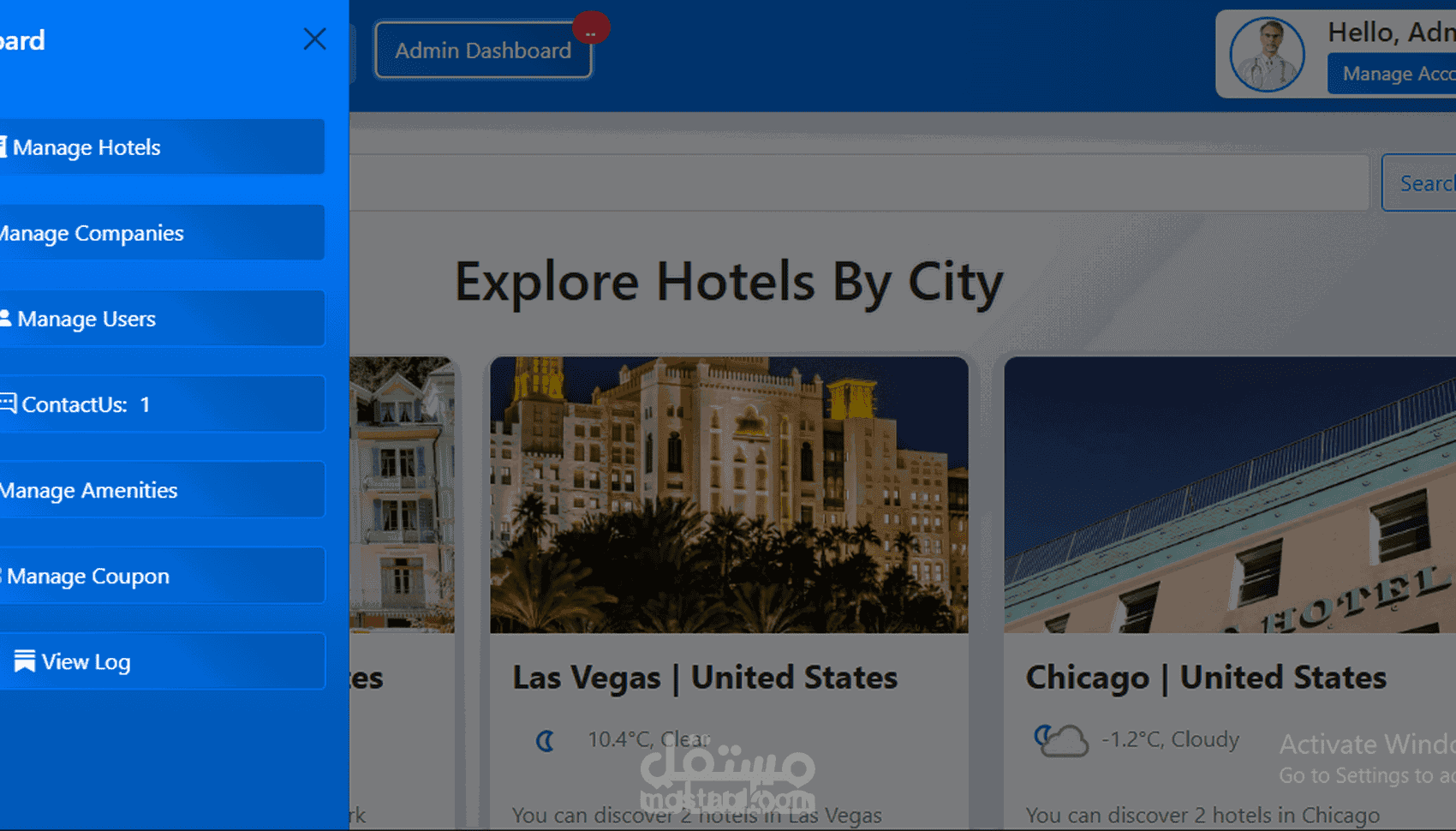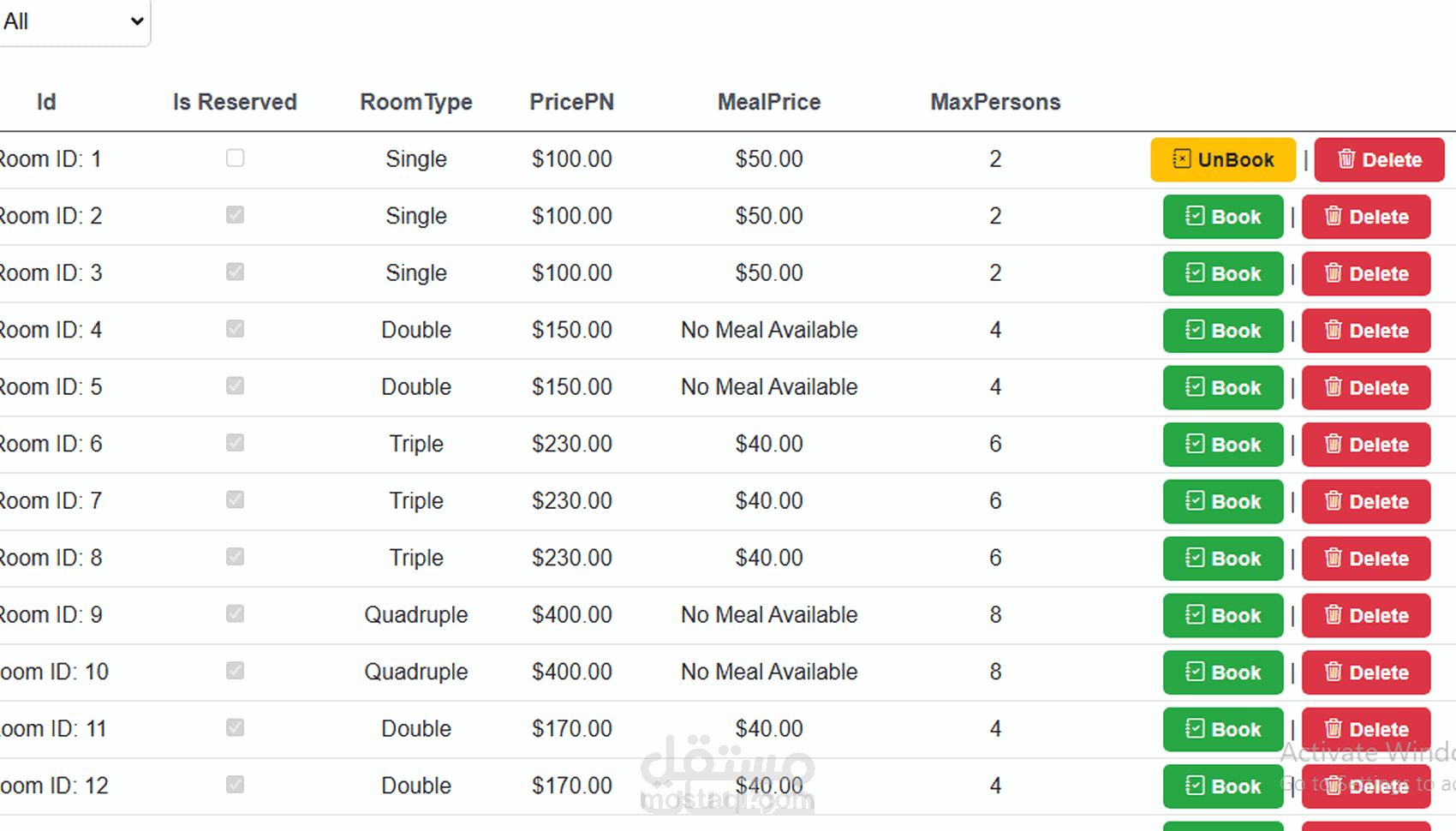 صفحة إدارة أو عرض بيانات (مثل الحجوزات).
