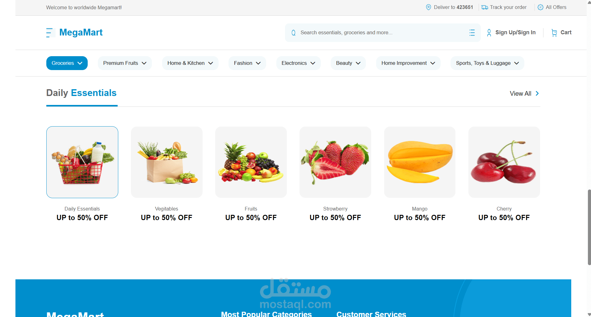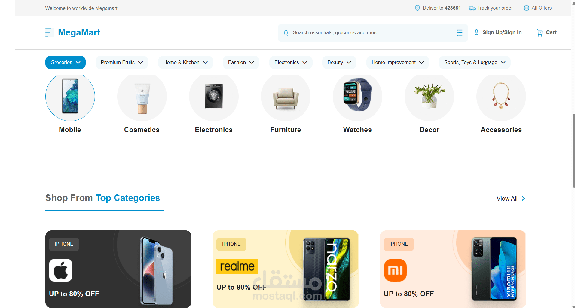 متجر إلكتروني جديد باسم ميجا مارت، متخصص في بيع الهواتف المحمولة، الإكسسوارات التقنية واليومية، بالإضافة إلى قسم خاص بالفواكه الطازجة