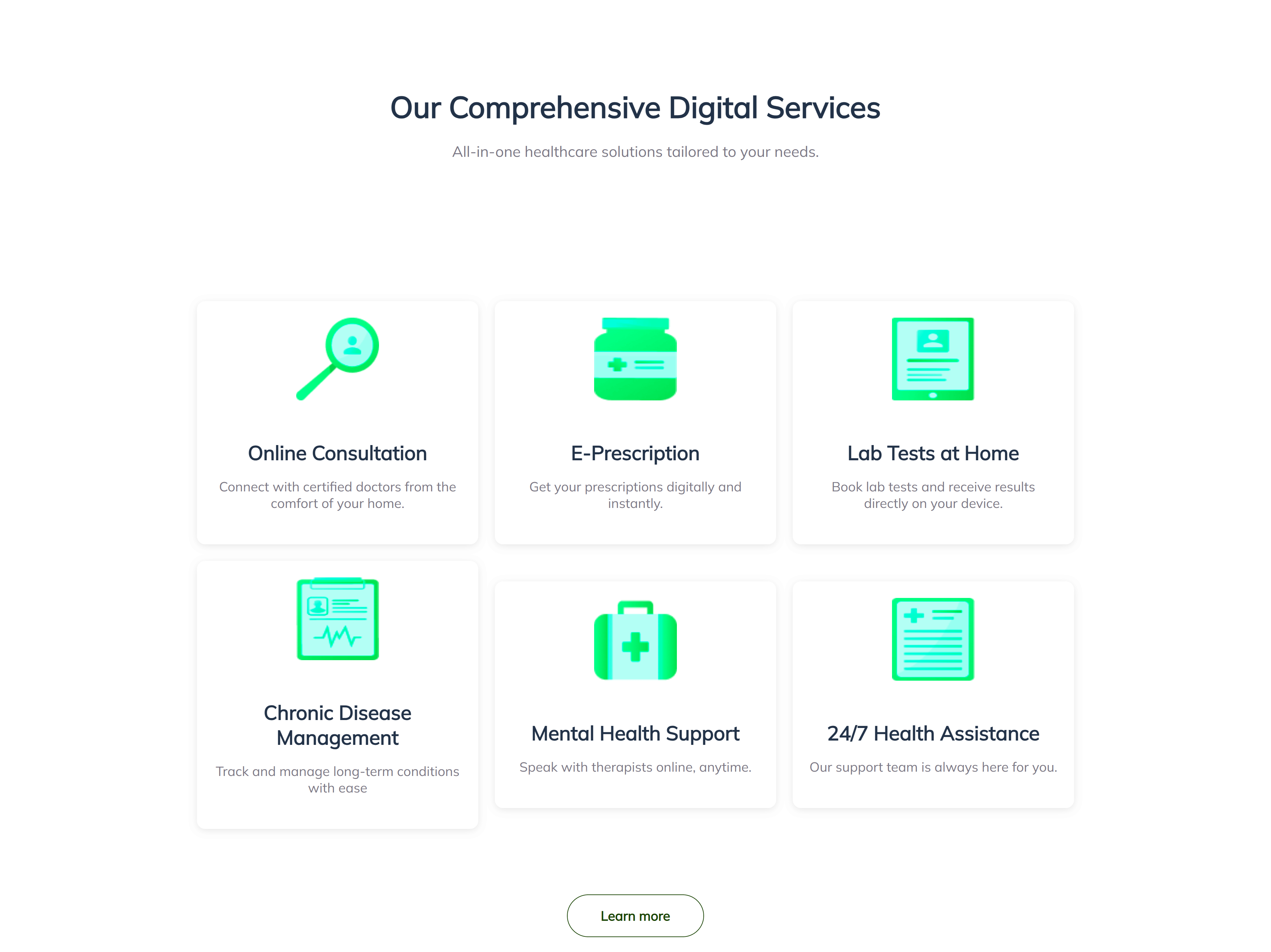 عرض الخدمات بطريقة جذابة تحفّز الزائر على التفاعل واتخاذ الإجراء المطلوب (تواصل – طلب خدمة – تسجيل).