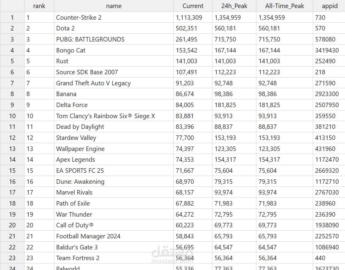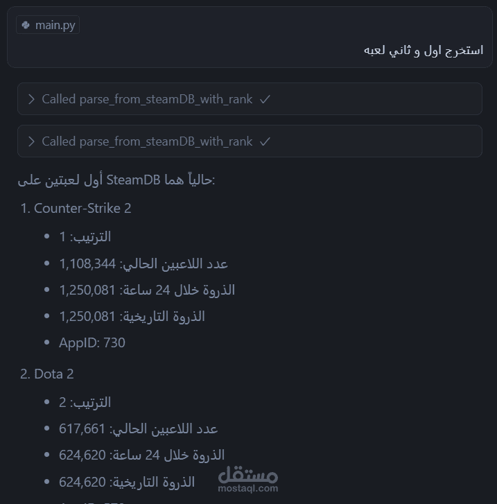 هذه أداة سريعة ومرنة لاستخراج بيانات الألعاب من موقع SteamDB، تم تطويرها باستخدام SeleniumBase لتنفيذ عملية التصفح واستخراج البيانات بشكل تلقائي.