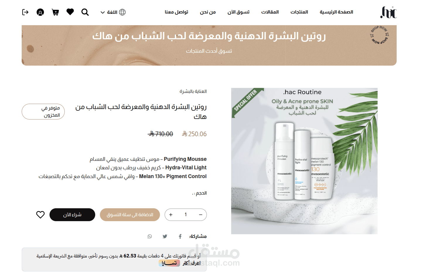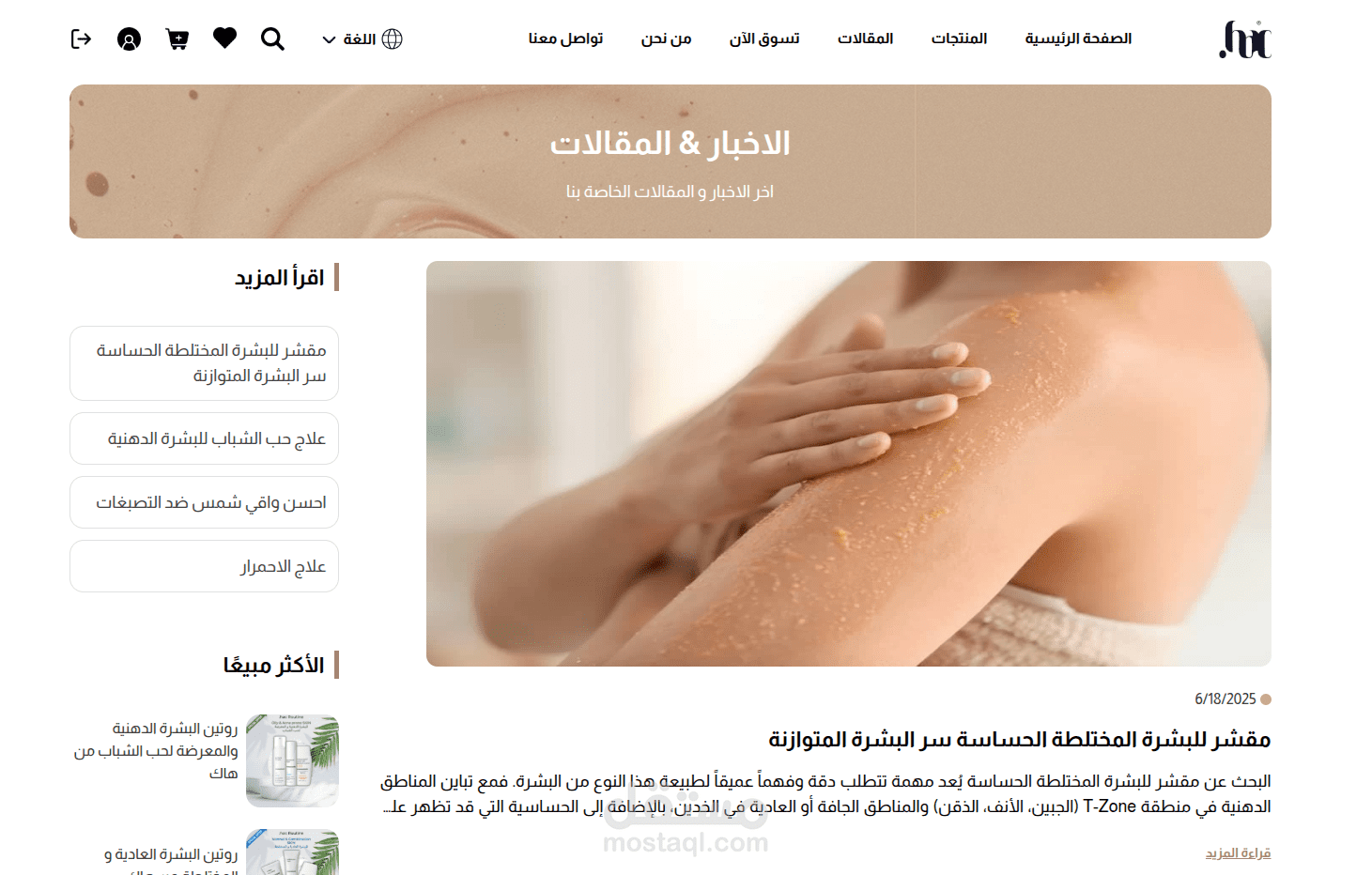 طورت موقع تجارة إلكترونية متكامل لمنتجات العناية بالبشرة باستخدام Angular v19 مع دعم كامل للـ SSR (Server Side Rendering) لضمان أفضل أداء وسرعة تحميل ممكنة.