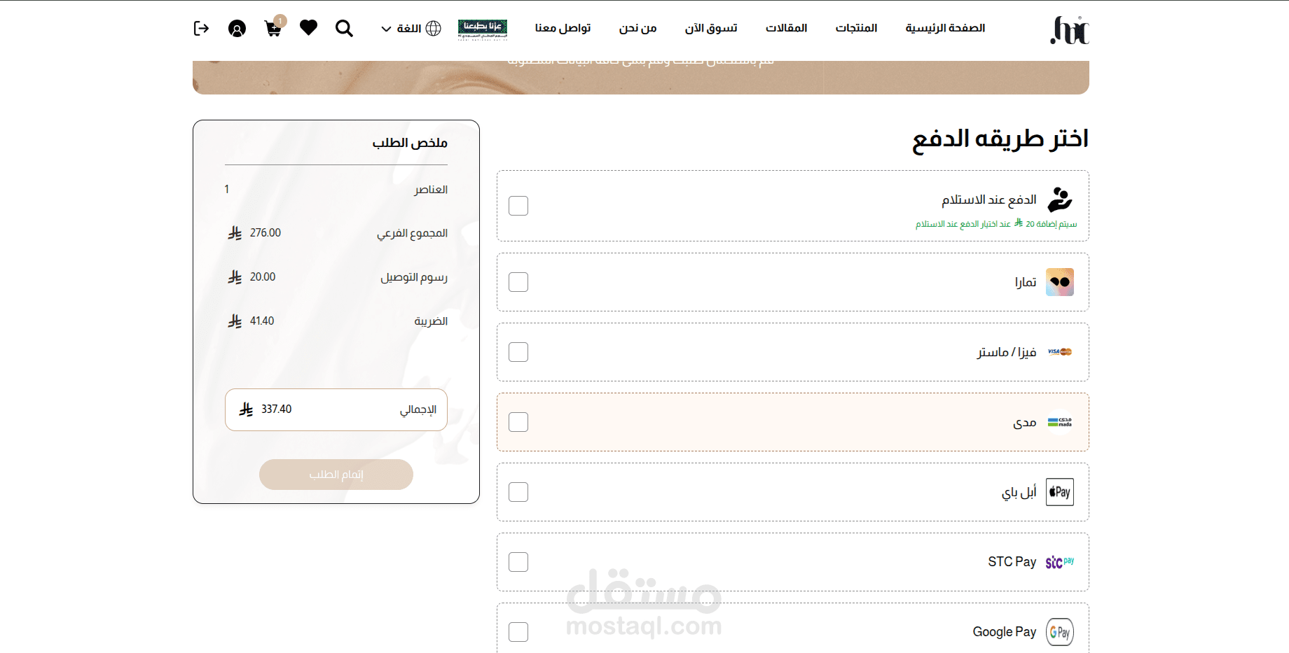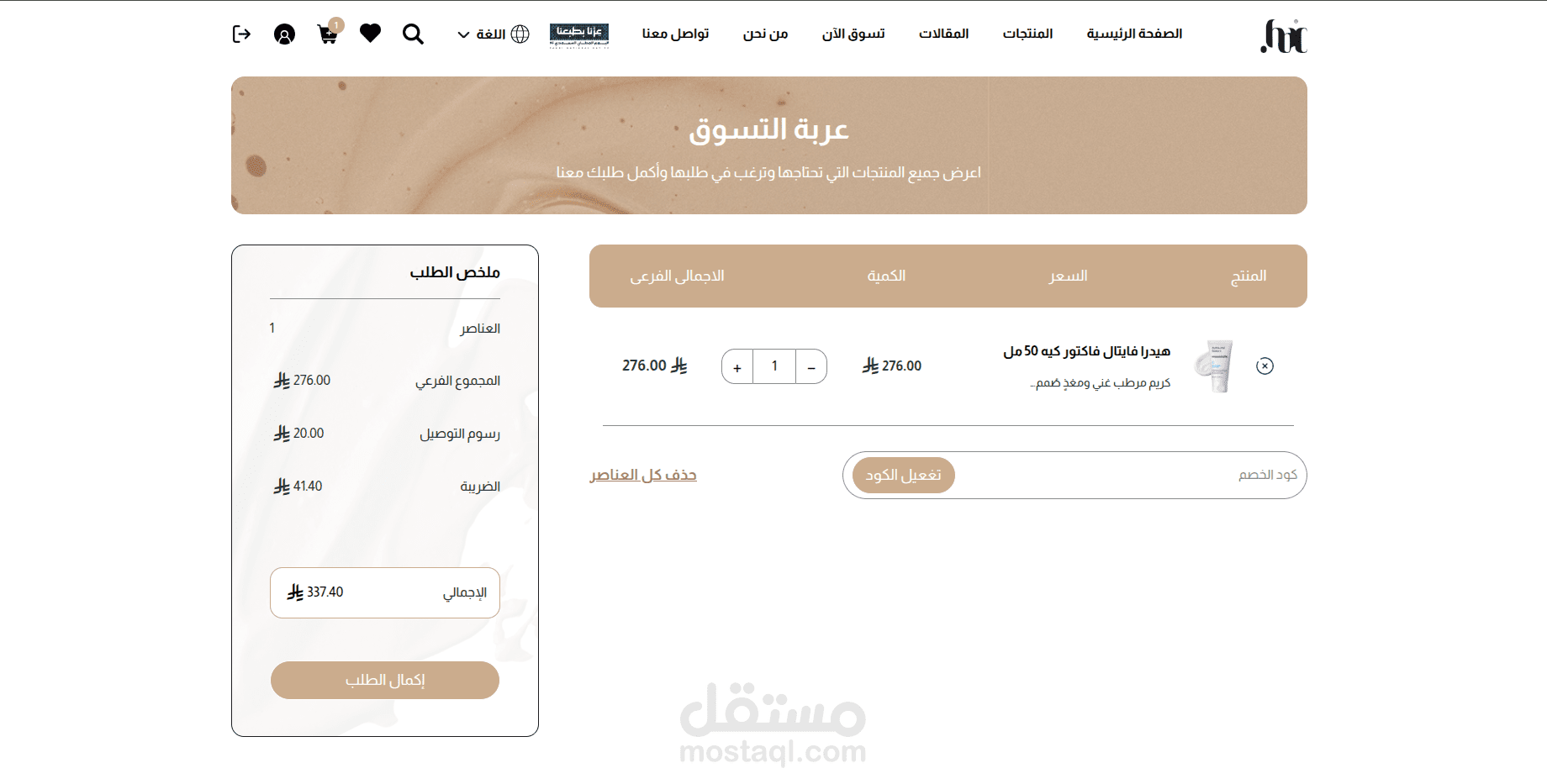 سلة المشتريات (Shopping Cart) لحفظ واكمال الطلبات بسهولة.