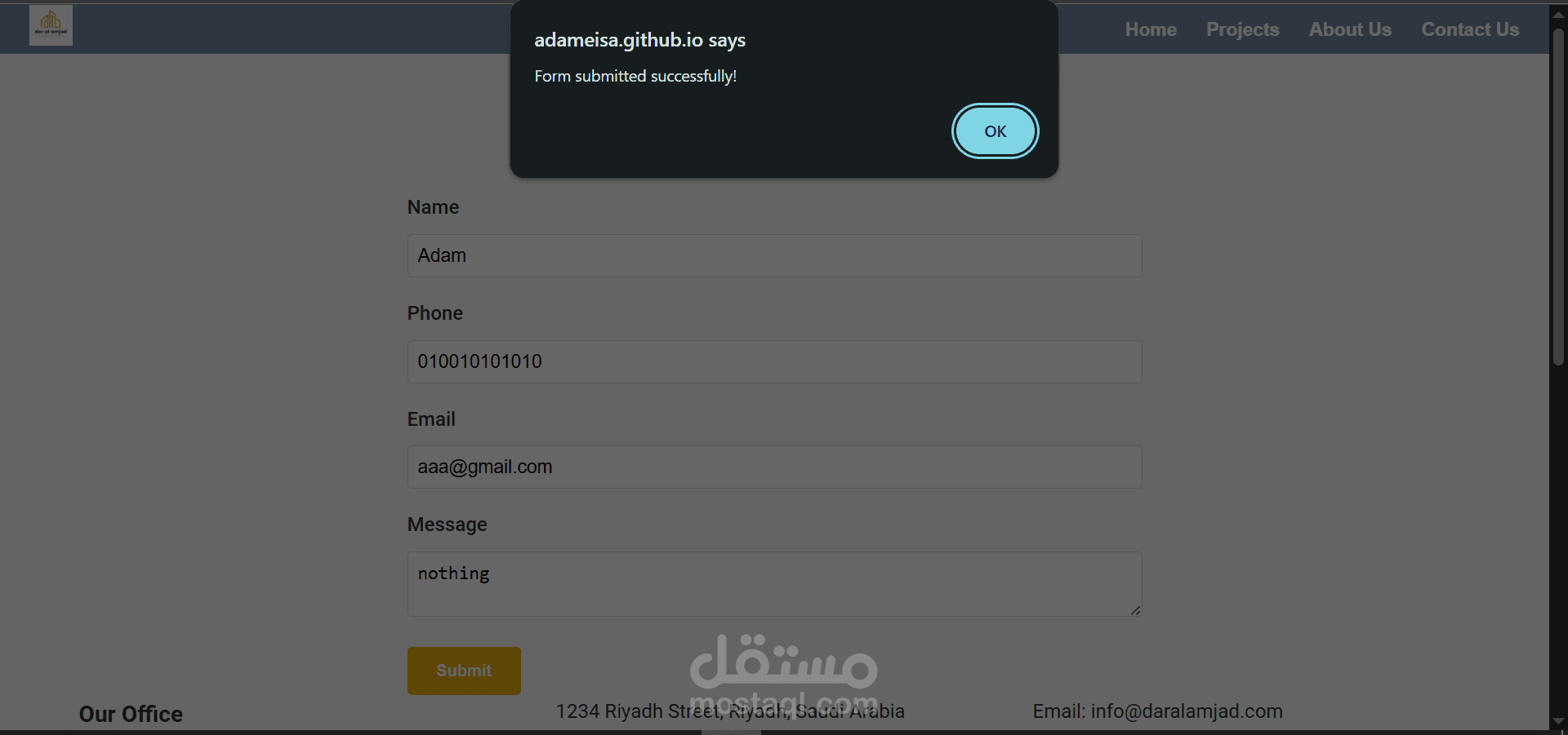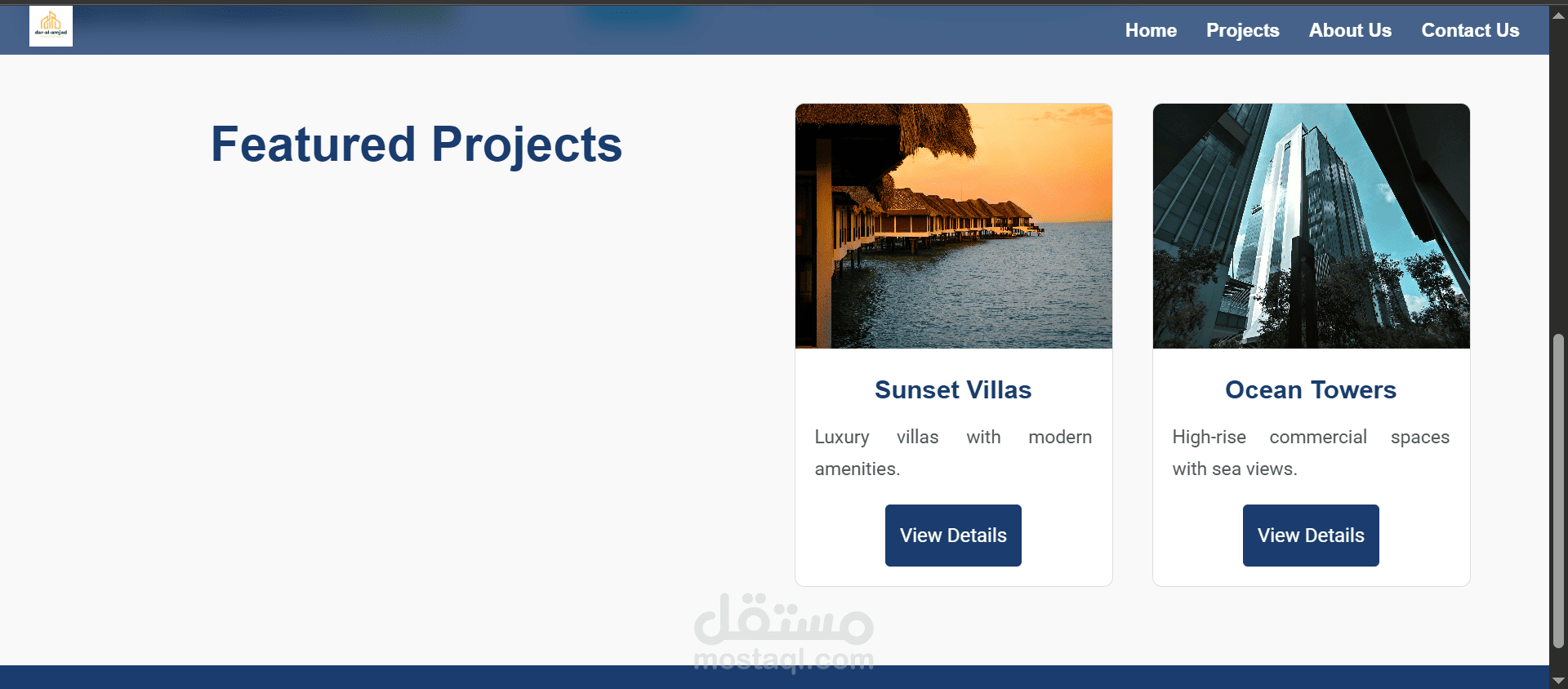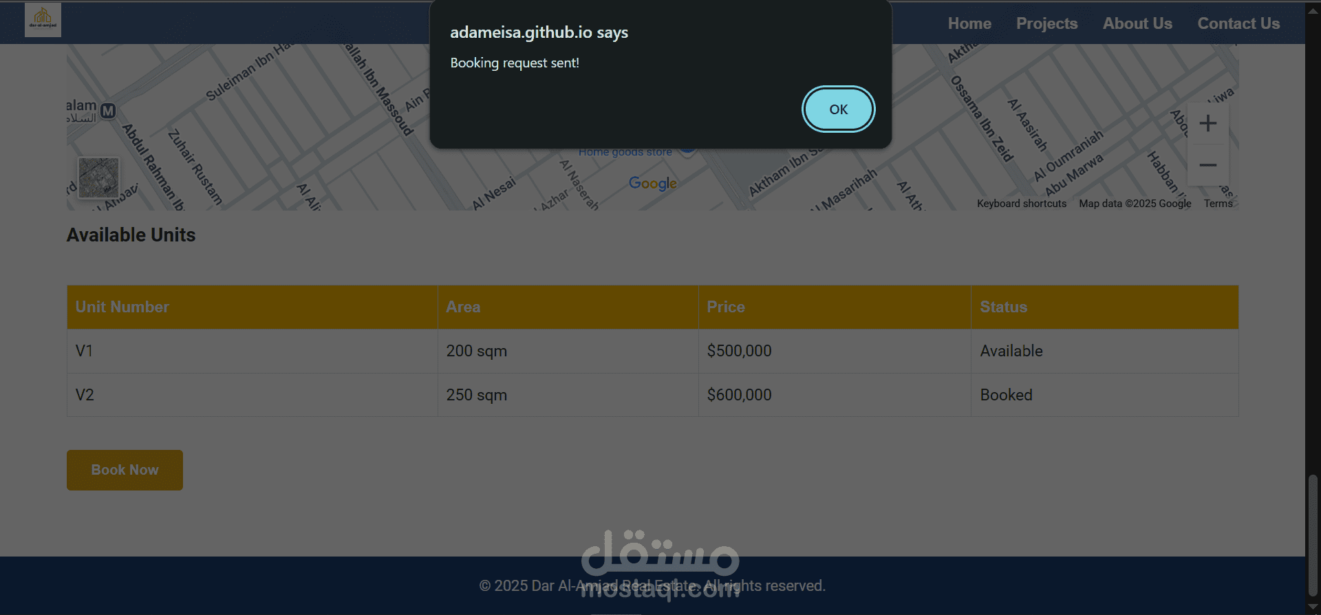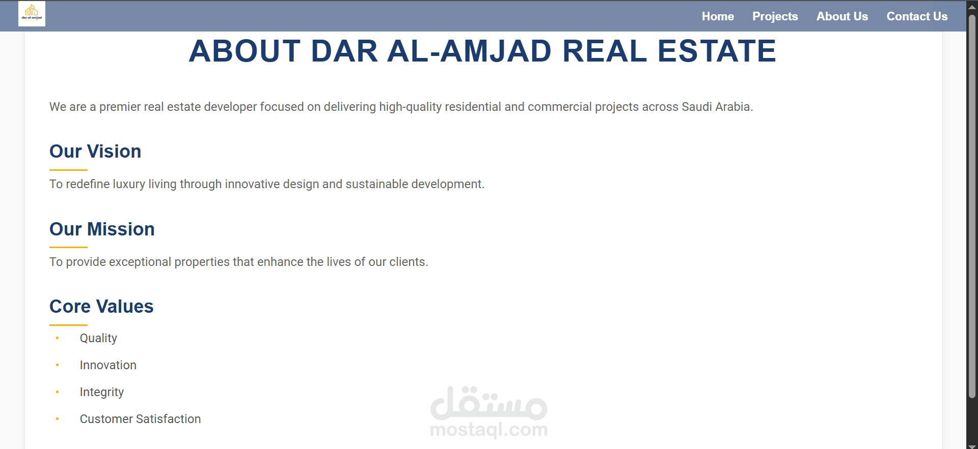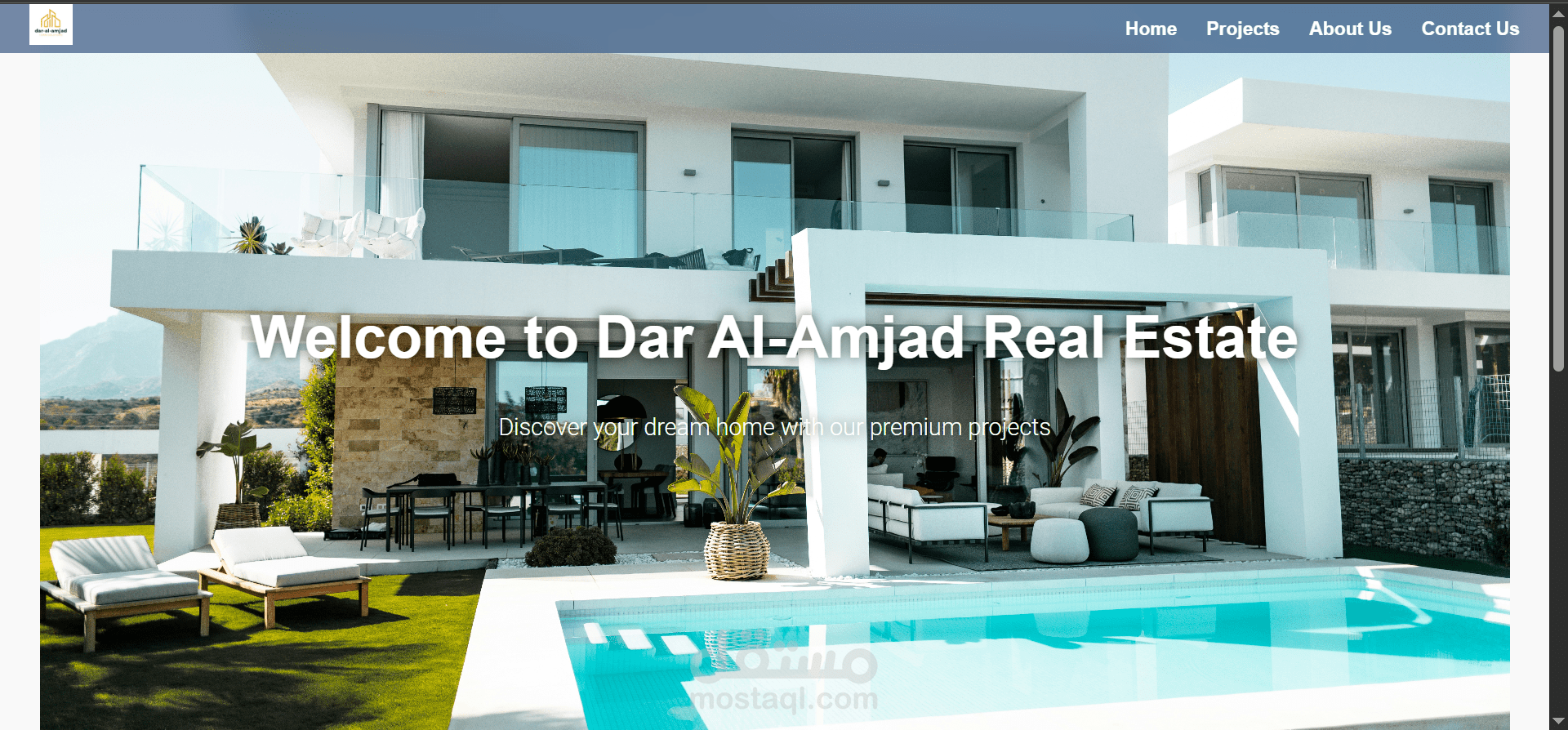 موقع دار الأمجد العقارية هو صفحة ويب احترافية مصممة بتقنيات HTML وCSS وJavaScript، ومُستضافة على GitHub Pages. يُعد مثالًا لموقع واجهة أمامية حيه ديناميكيه يعرض المحتوى بشكل منظم وسريع ضمن تصميم من صفحة واحدة (Landing Page).
