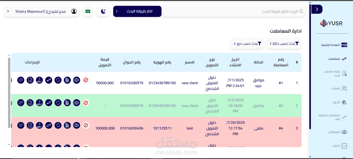 نظام داخلي للموظفين مع لوحة تحكم للعملاء. يُقدّم العميل طلب تمويل من الموقع الرئيسي، ثم يمرّ بعملية من سبع مراحل مع كل موظف متخصص للموافقة على طلب التمويل.