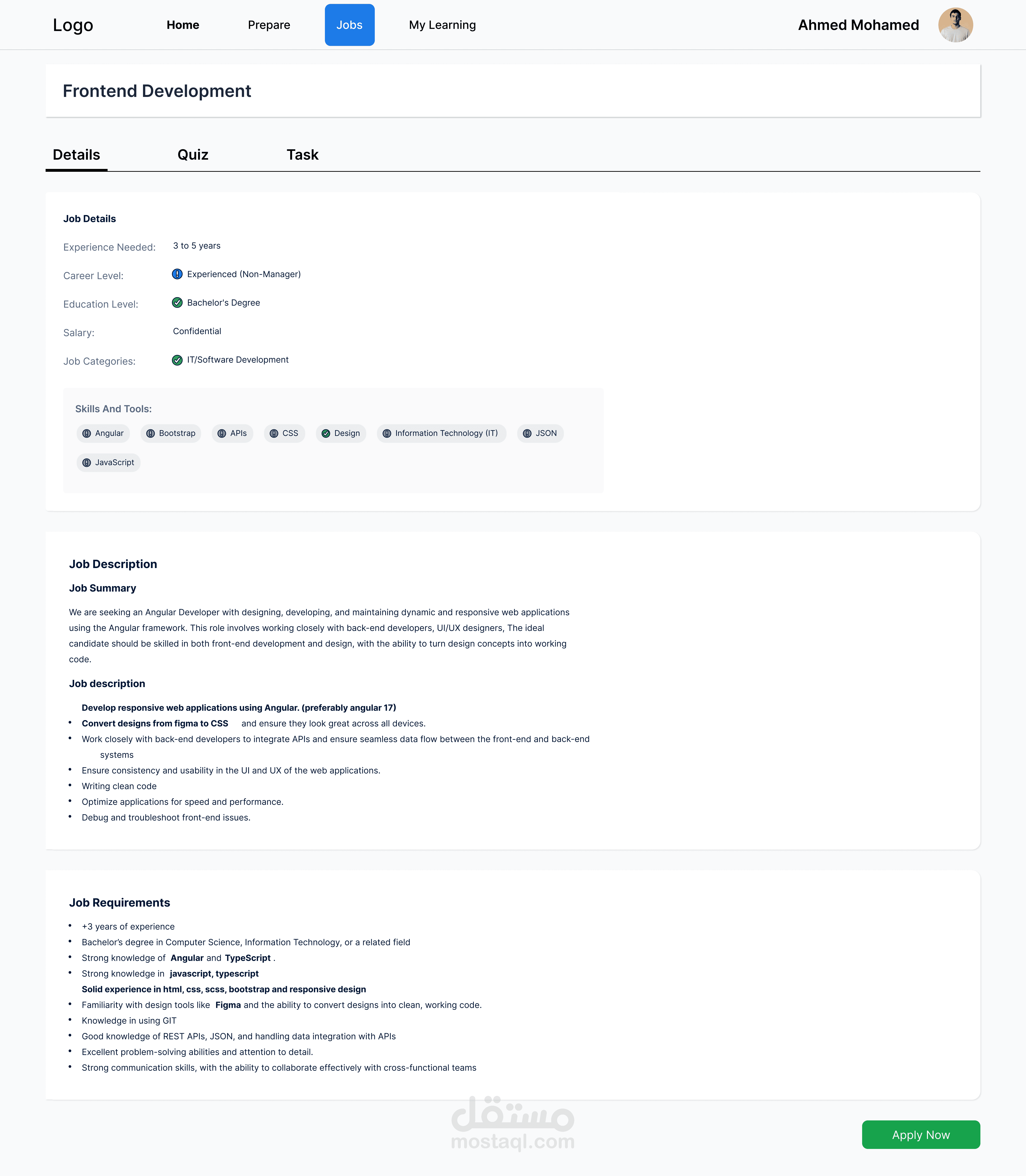تصميم موقع للتدريب والتقديم على وظائف