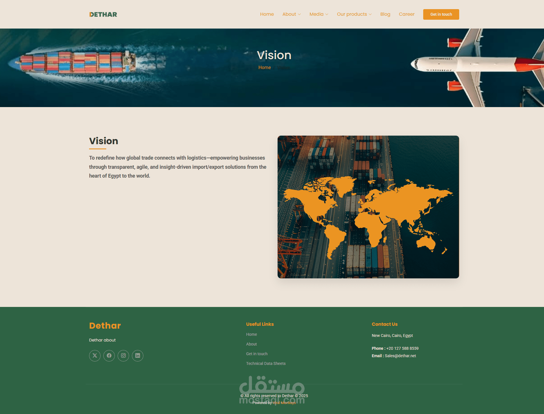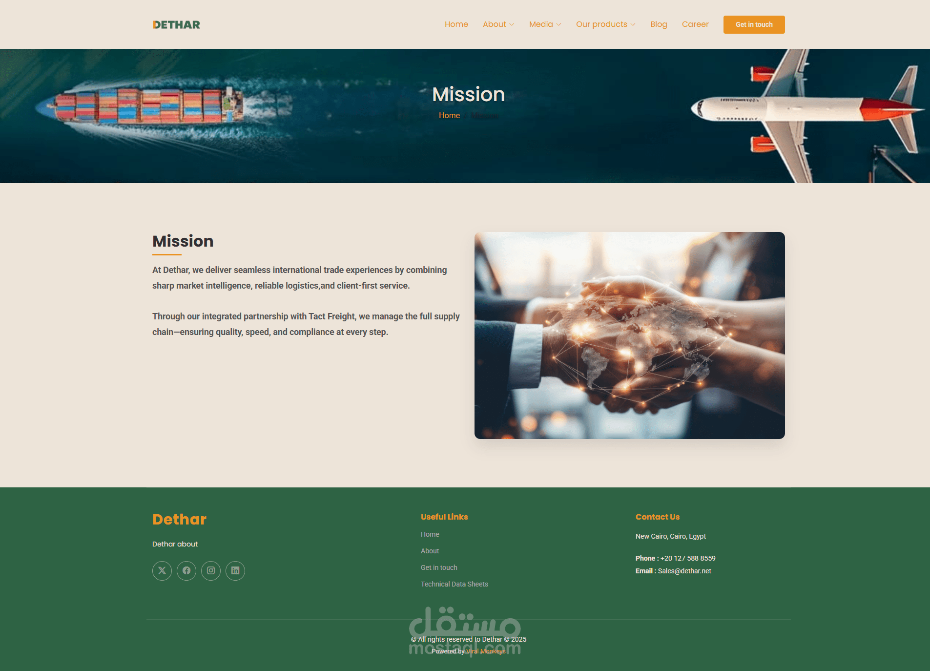 موقع إلكتروني احترافي تم تطويره لشركة ديثار ، وهي شركة استيراد وتصدير ، مصمم لعرض خدمات الشركة وعمليات التجارة العالمية وقطاعات الأعمال.