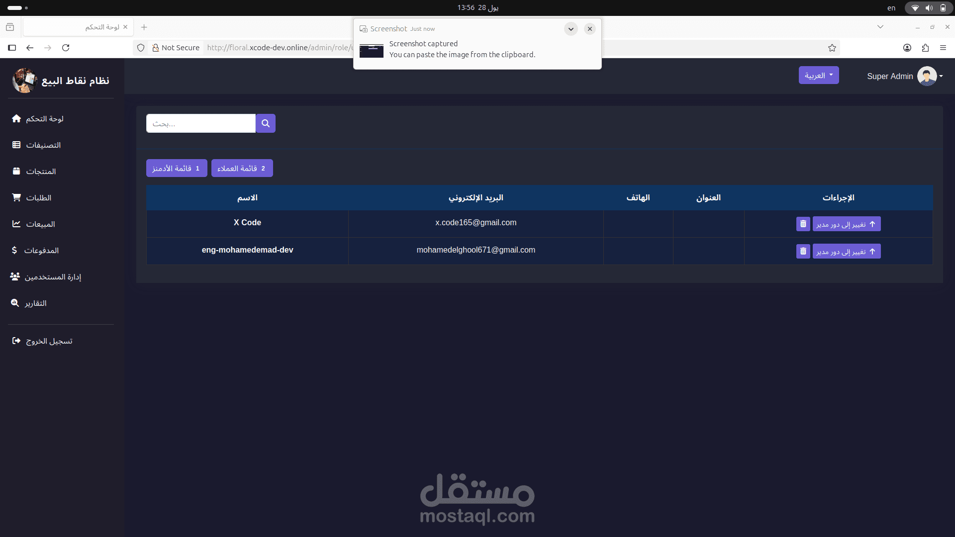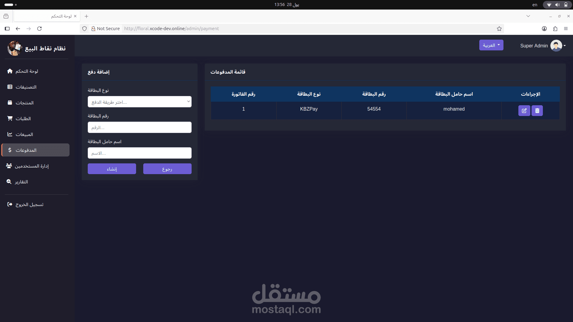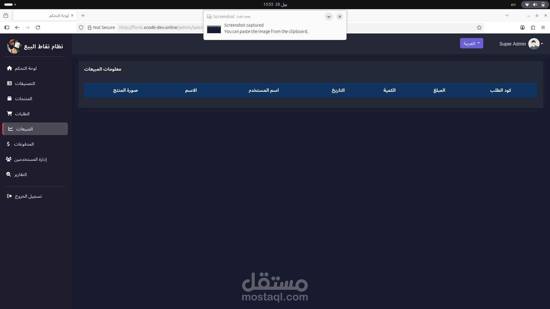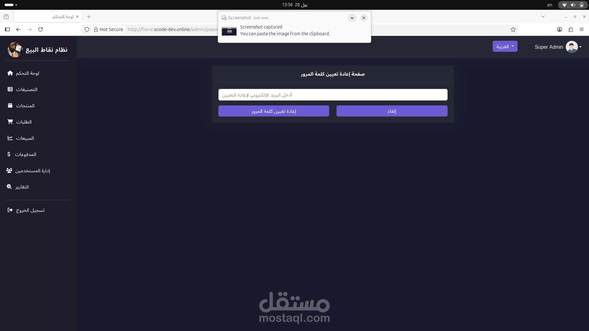 A fully integrated e-commerce website for managing a flower and gift shop. It allows users to browse products, purchase online, and choose suitable payment methods, with a powerful admin dashboard for managing orders, inventory, and sales. Developed with a modern interface supporting both Arabic and English, with full support for notifications and reports sign as admnin with email : superadmin@gmail.com,