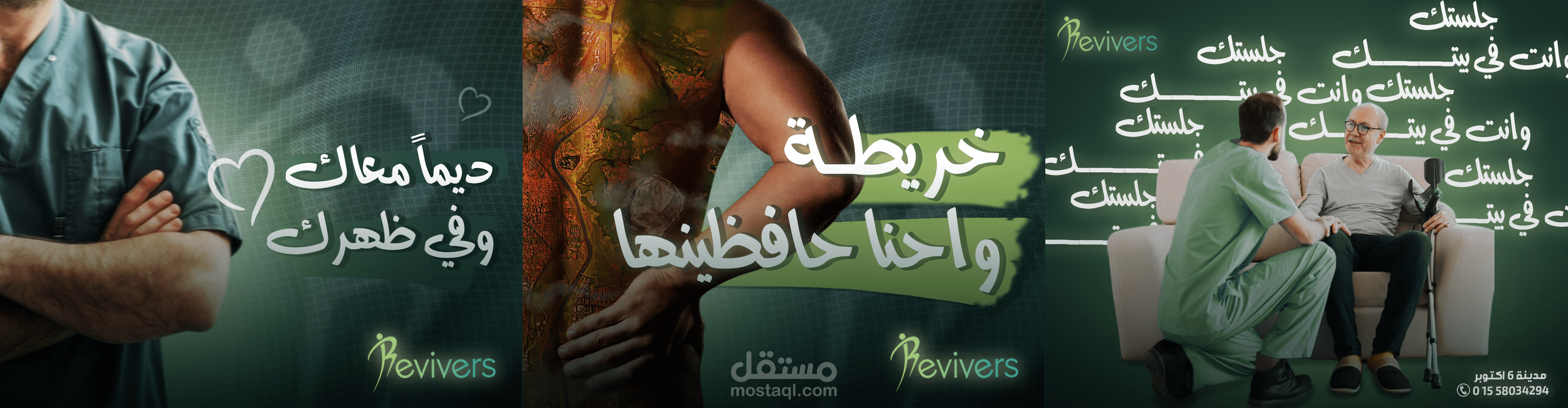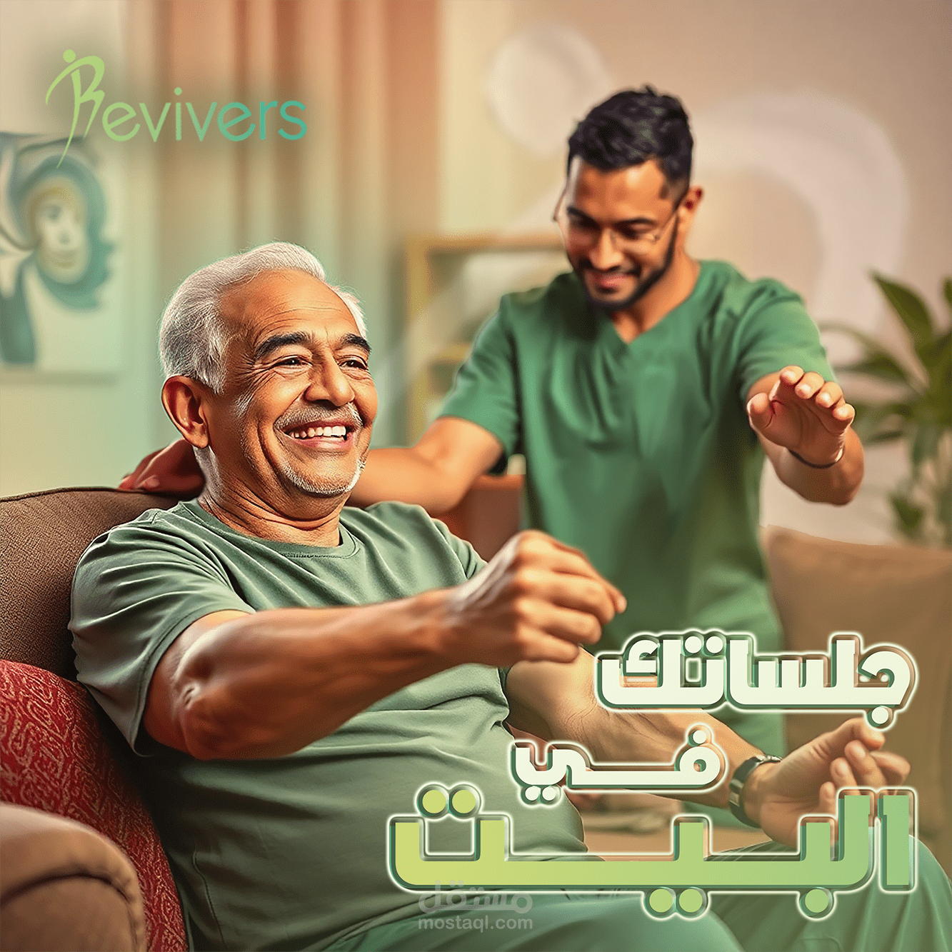 الترويج لخدمات العلاج الطبيعي المنزلي لكبار السن أو من يعانون من صعوبات حركية، مع التأكيد البصري على أن الخدمة توفر الراحة النفسية والجسدية داخل البيئة المنزلية.