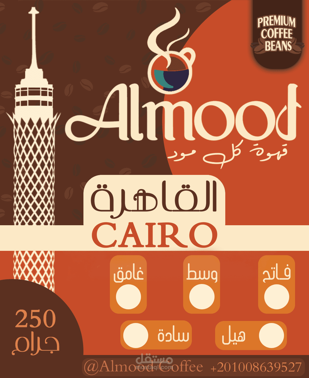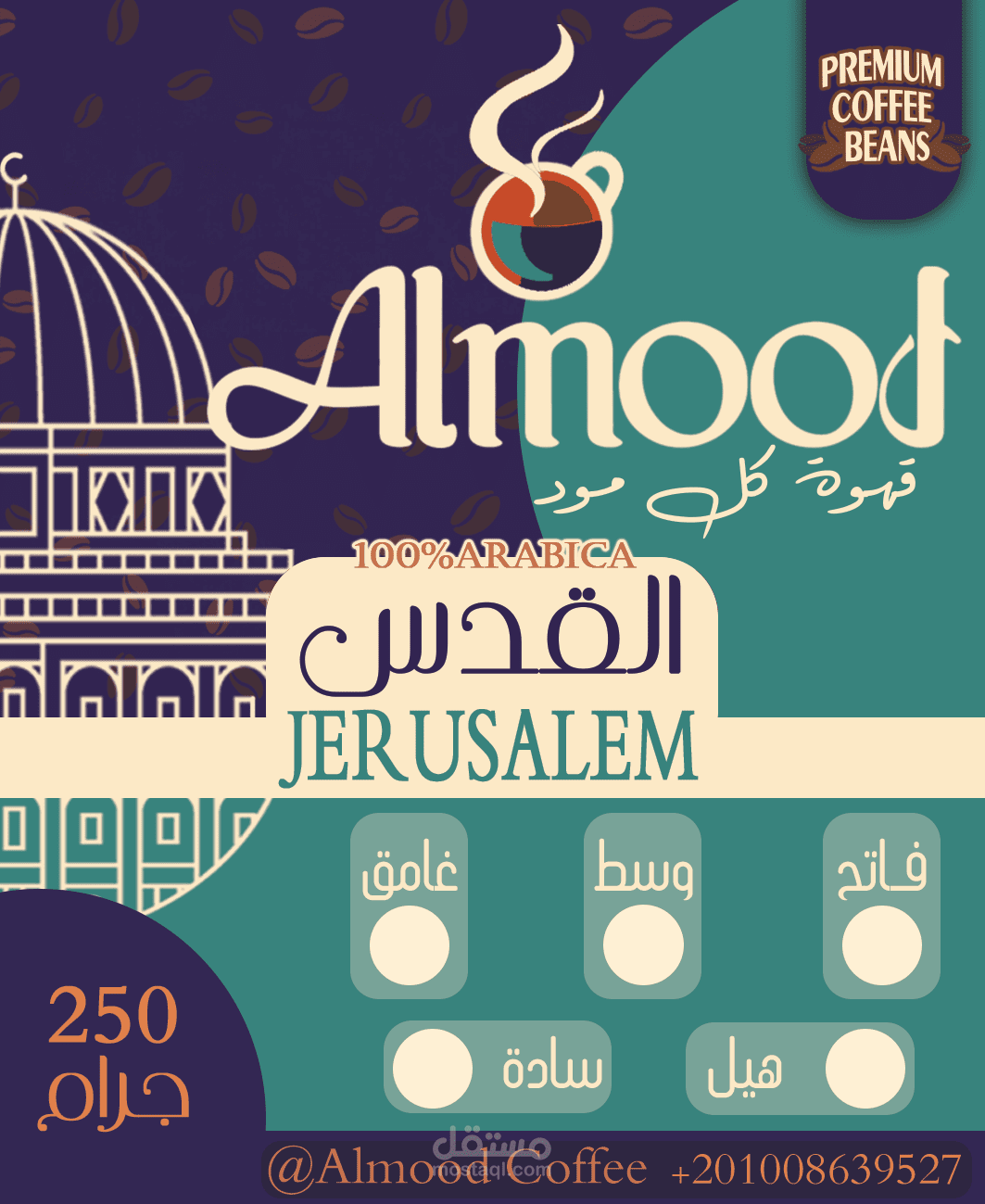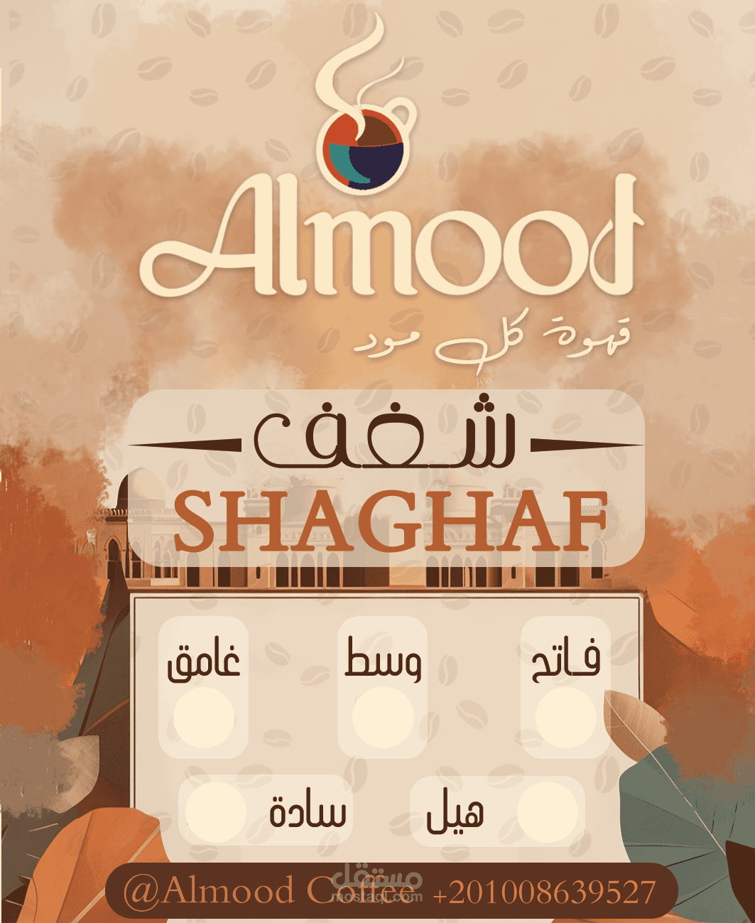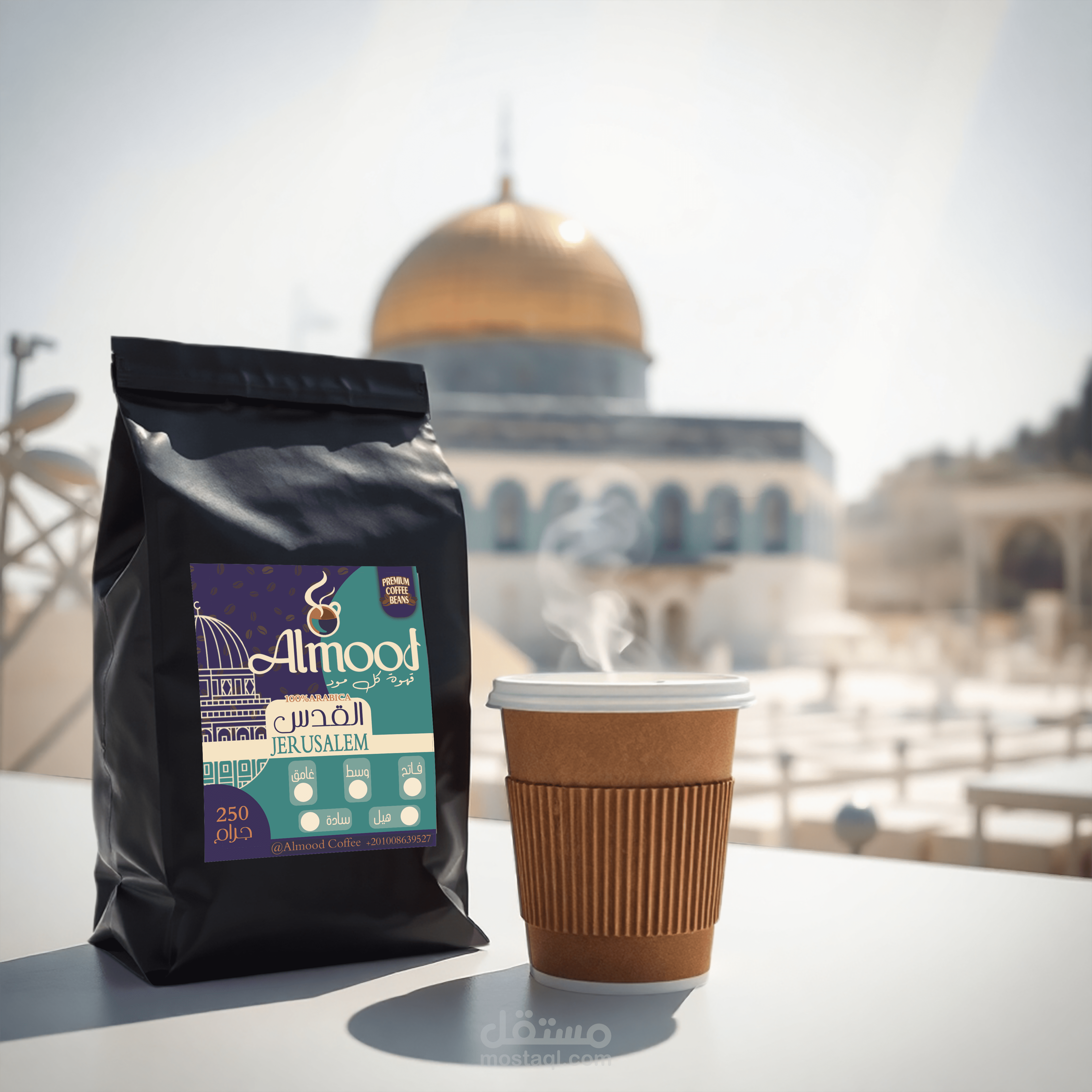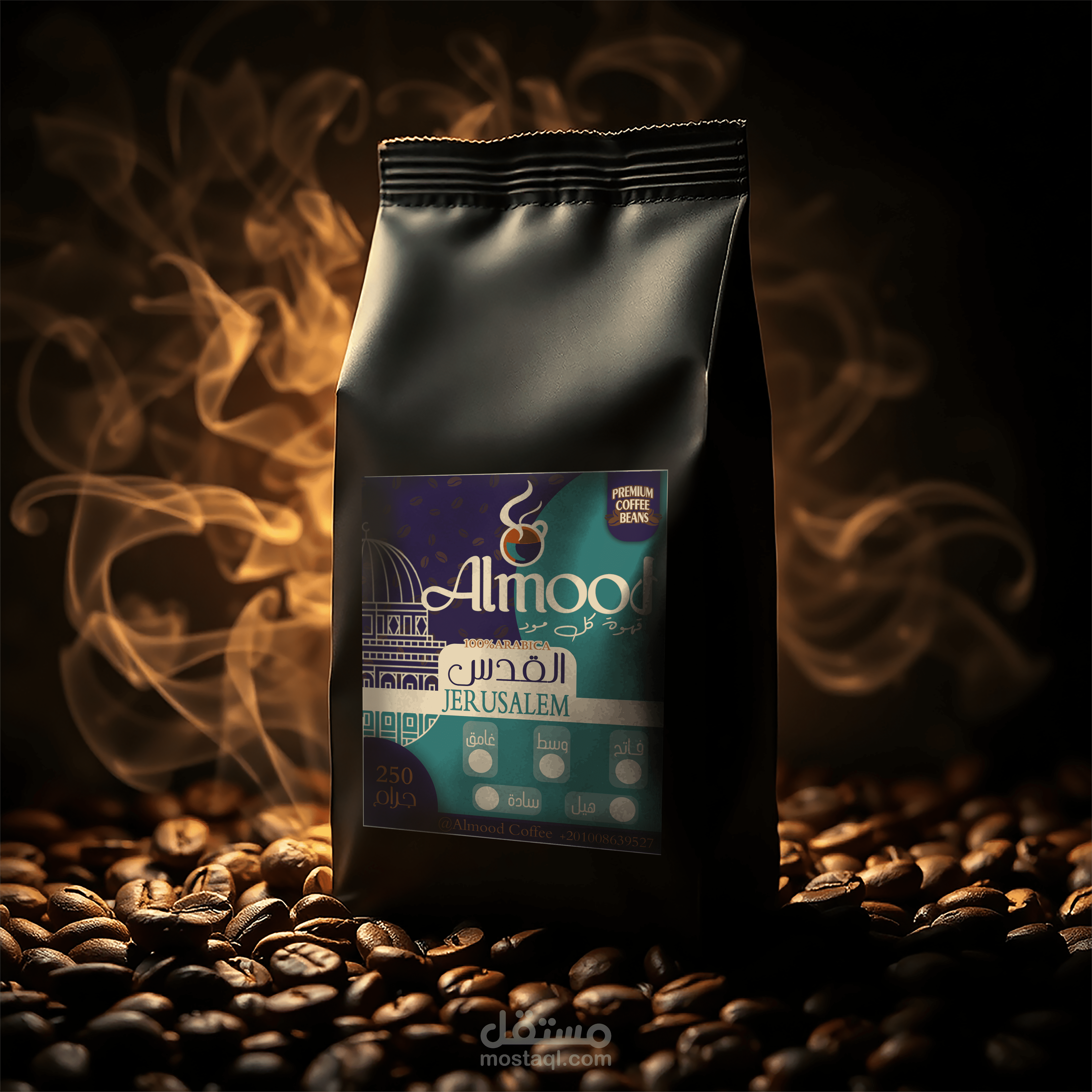 تصميم الهوية البصرية الكاملة لمنتج قهوة عربي — "Almood Coffee":