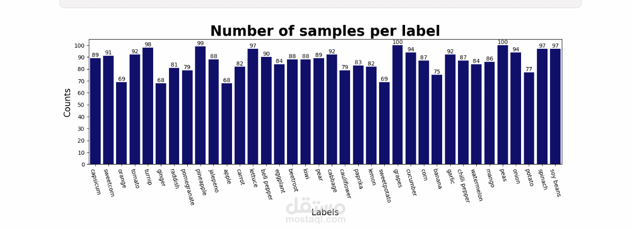 تم تدريب النموذج على مجموعة من الصور المختلفة لتمكينه من التمييز بين الأصناف بدقة عالية.