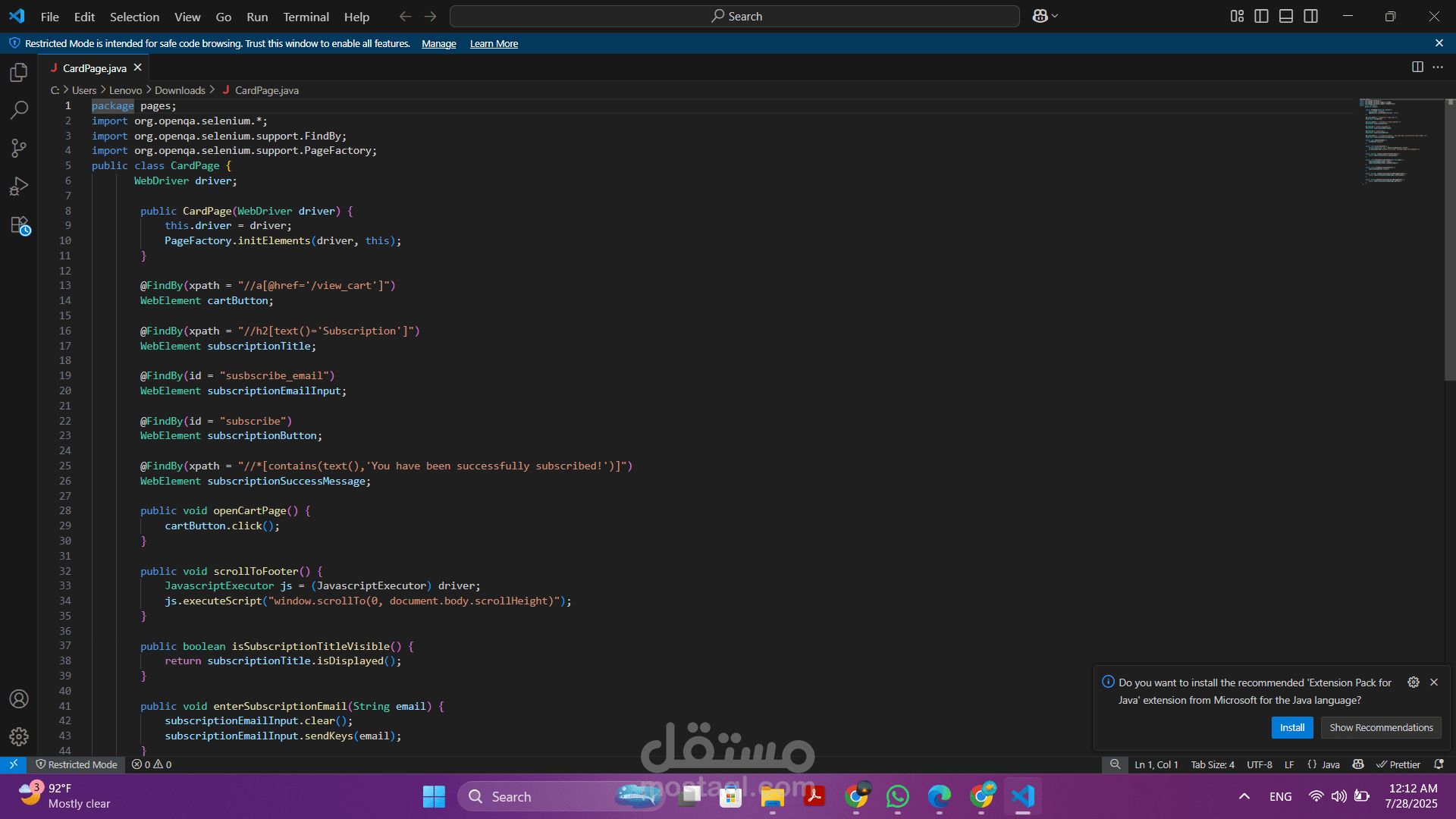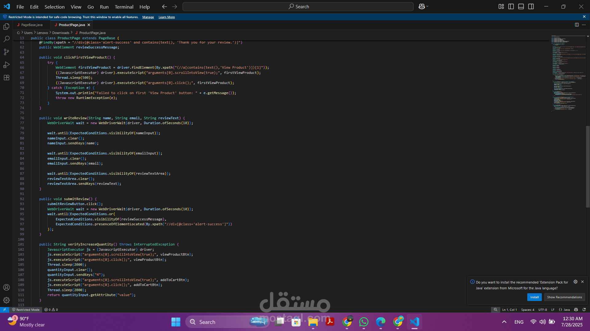 إطار عمل أتمتة قوي (Robust Automation Framework): باستخدام نمط Page Object Model (POM) لزيادة قابلية الصيانة وقابلية إعادة الاستخدام لأكواد الاختبار، مما يضمن كفاءة عالية في إدارة السيناريوهات المعقدة.