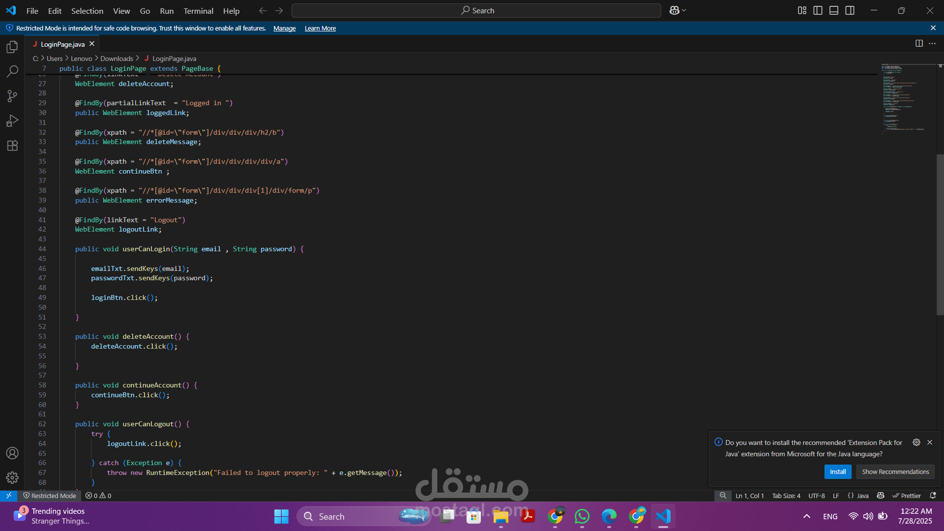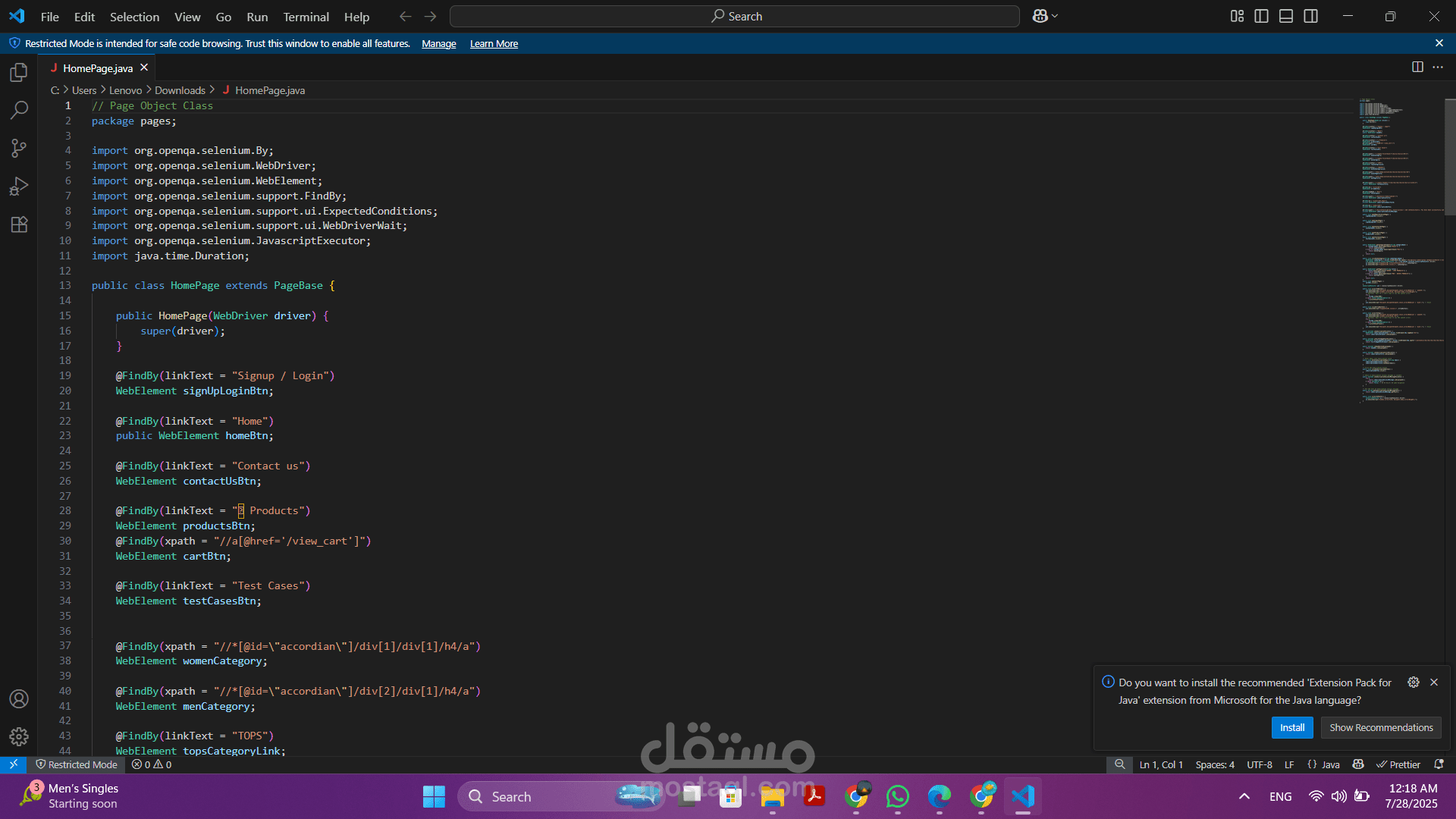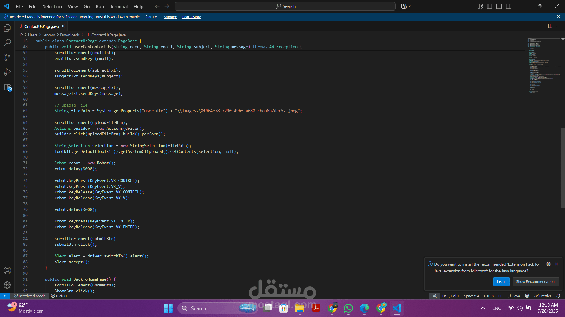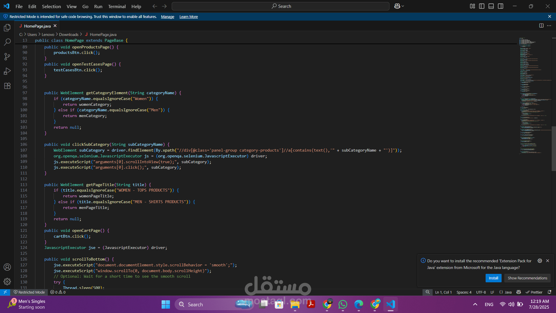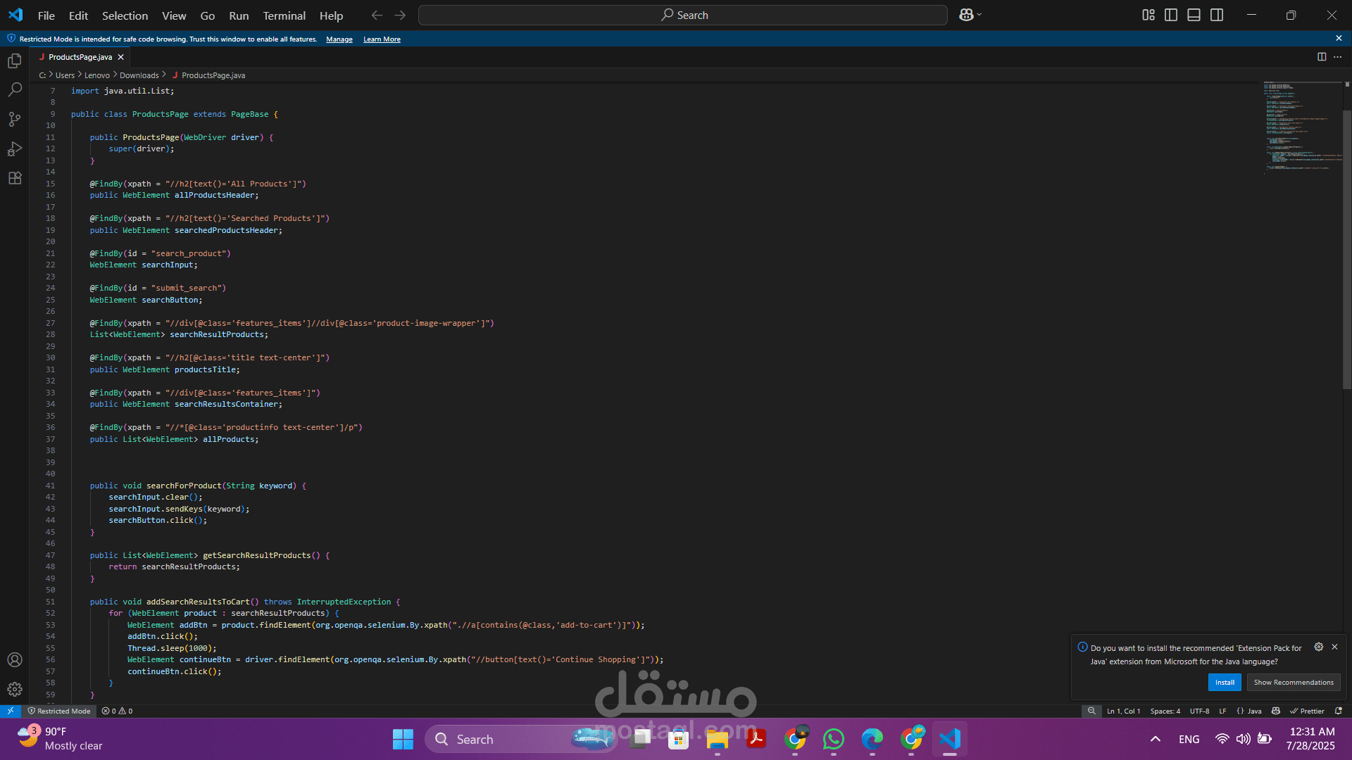هذا المشروع يوضح خبرتي العميقة في أتمتة الاختبار (Automation Testing) لتطبيق ويب، وذلك باستخدام Selenium WebDriver ولغة Java. تم تطبيق المشروع على موقع التجارة الإلكترونية المعروف AutomationExercise لتغطية مجموعة واسعة من سيناريوهات المستخدم الحقيقية.