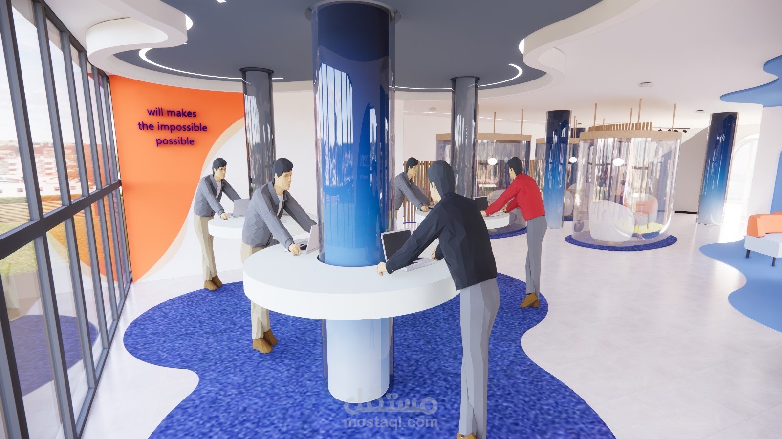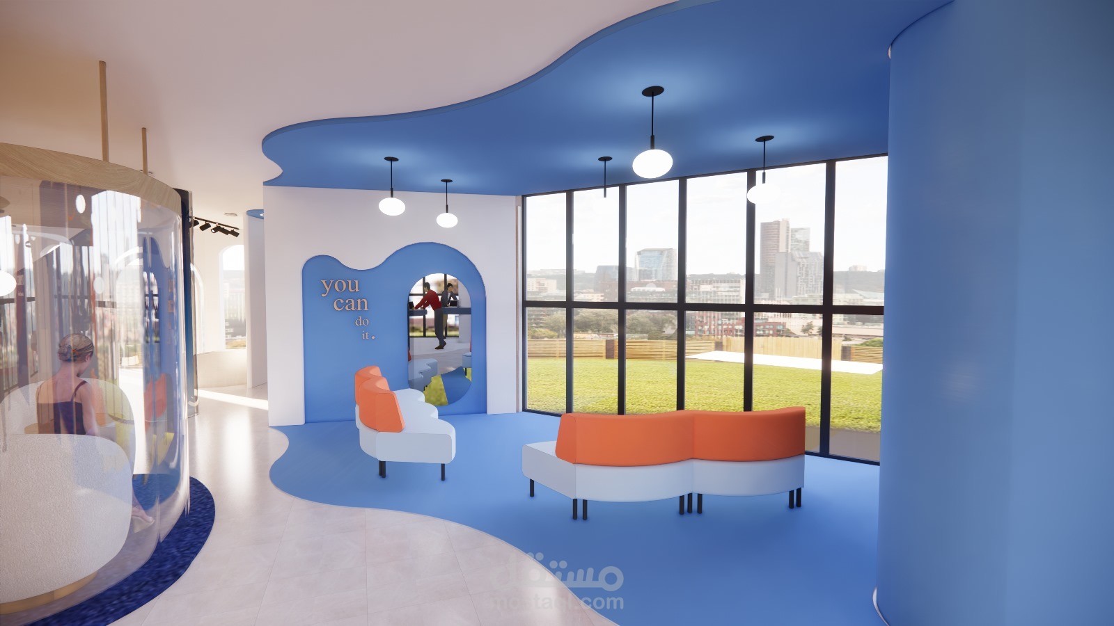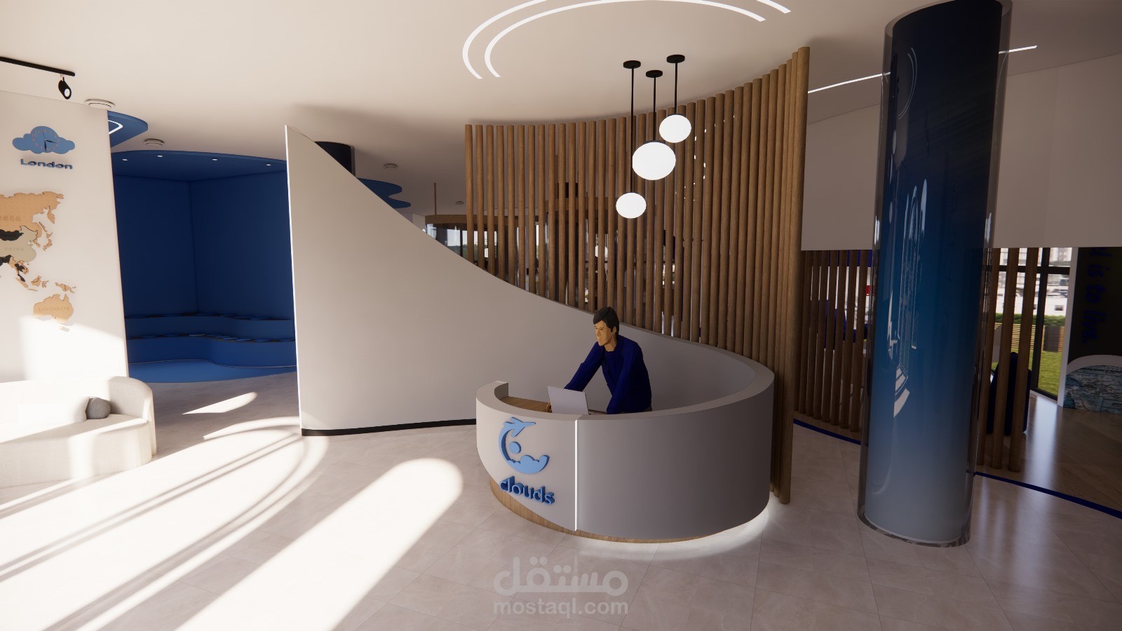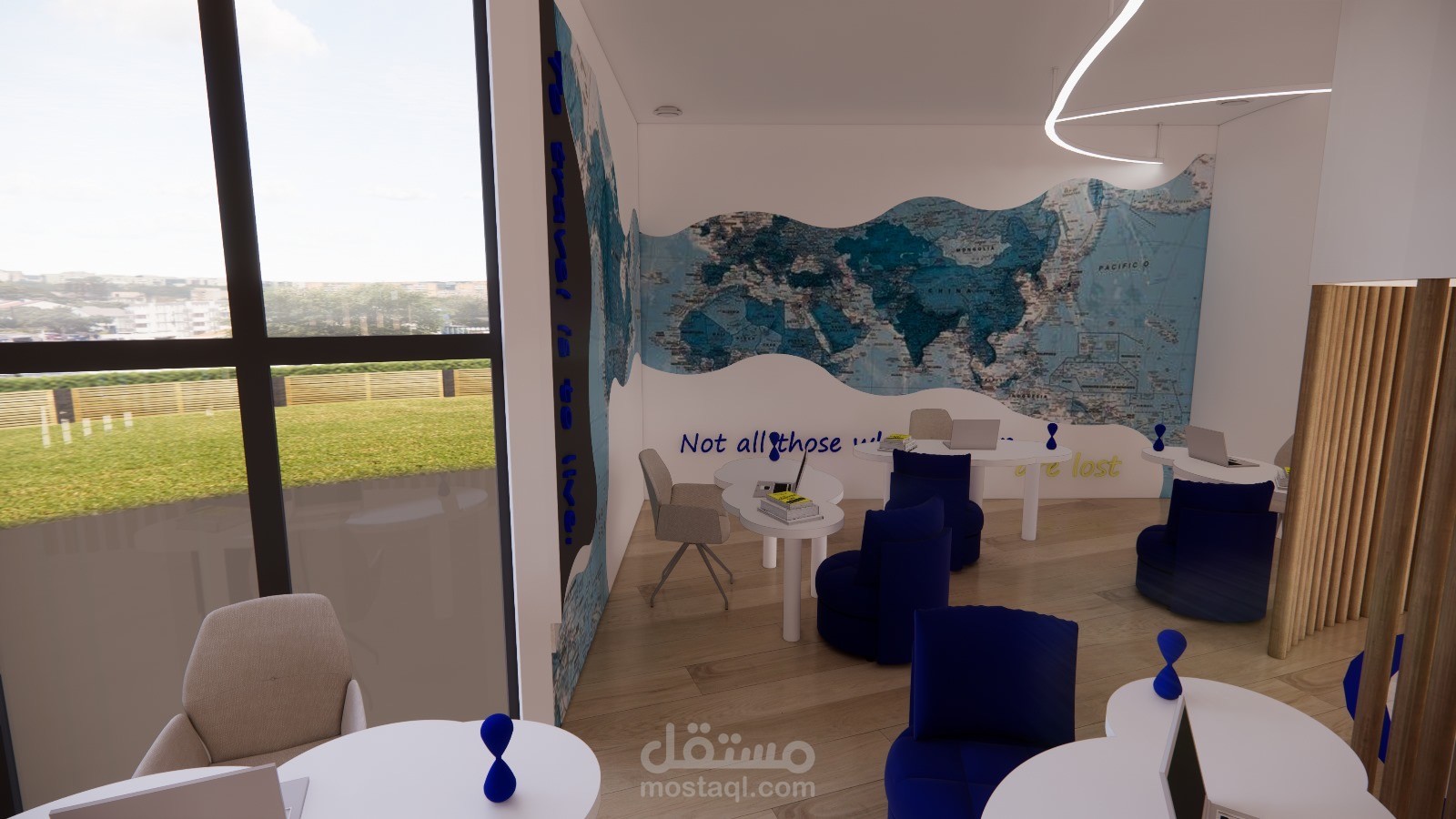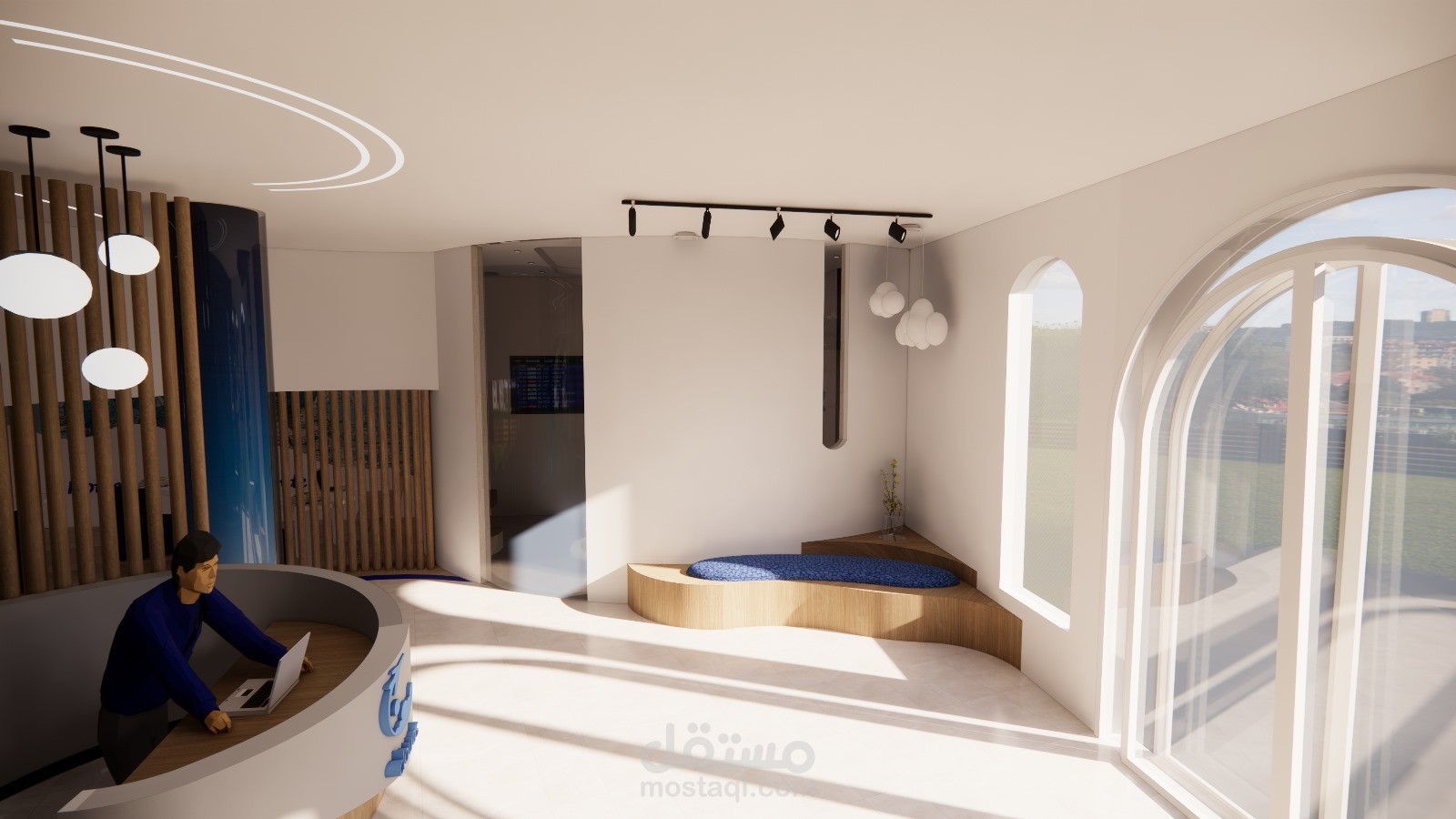 مستوحى تصميم شركة الطيران فكرته من الغيوم، كرمز للانسيابية، الخفة، والانطلاق. تُعتمد خطوط ناعمة ومنحنية في التكوين العام للمساحات المعمارية والداخلية، لتجسيد حركة السحب في السماء. تهيمن الألوان الهادئة والمضيئة مثل الأبيض، الرمادي الفاتح، ودرجات الأزرق السماوي على الهوية البصرية والخامات، مما يعزز الشعور بالرحابة والهدوء. تُستخدم خامات خفيفة وعصرية مثل الزجاج، الألمنيوم، والأقمشة الشفافة ضمن الفراغات الداخلية، مع إضاءة موزعة بلطف تحاكي الإضاءة الطبيعية بين الغيوم. كما تم دمج عناصر تصميمية عضوية وتجريدية في الأسقف والجدران تُمثّل تشكيلات سحابية، ما يمنح التجربة البصرية طابعًا انسيابيًا وهادئًا. يعكس التصميم روح الطيران والانفتاح على السماء، ويمنح العملاء تجربة متناغمة تربط بين السفر والراحة والانسياب