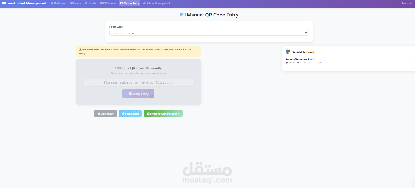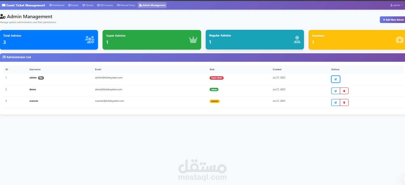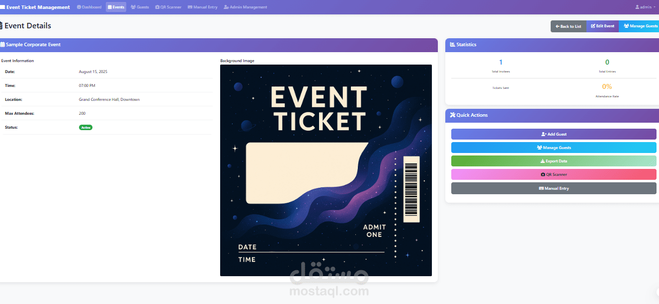 إدارة كاملة للفعاليات والضيوف مع إمكانية البحث والتعديل.