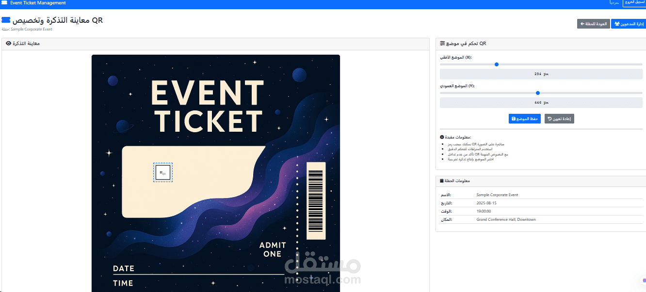 دعم تحميل صور خلفية للتذاكر وصور الفعاليات.