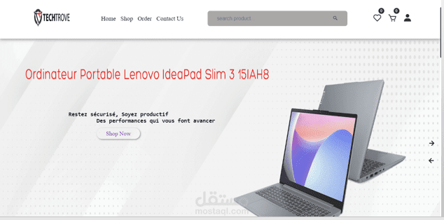 مشروع "TechTrove" هو عبارة عن متجر إلكتروني متكامل واحترافي، تم تصميمه وتطويره ليكون منصة سهلة الاستخدام، آمنة، وعالية الأداء لشراء المنتجات التقنية. المتجر متخصص في بيع مجموعة واسعة من أجهزة الكمبيوتر المحمولة والمكتبية، بالإضافة إلى المكونات، الأجهزة الطرفية، والملحقات الإلكترونية.