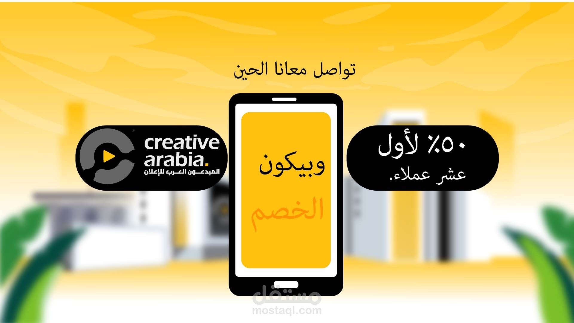 اعلان موشن جرافيك خاص بشركة كريتيف اربيا يشرح تقديم خدماتهم والتي تتمثل في تصمم فديوهات الموشن جرافيك بكل احترافية وابداع