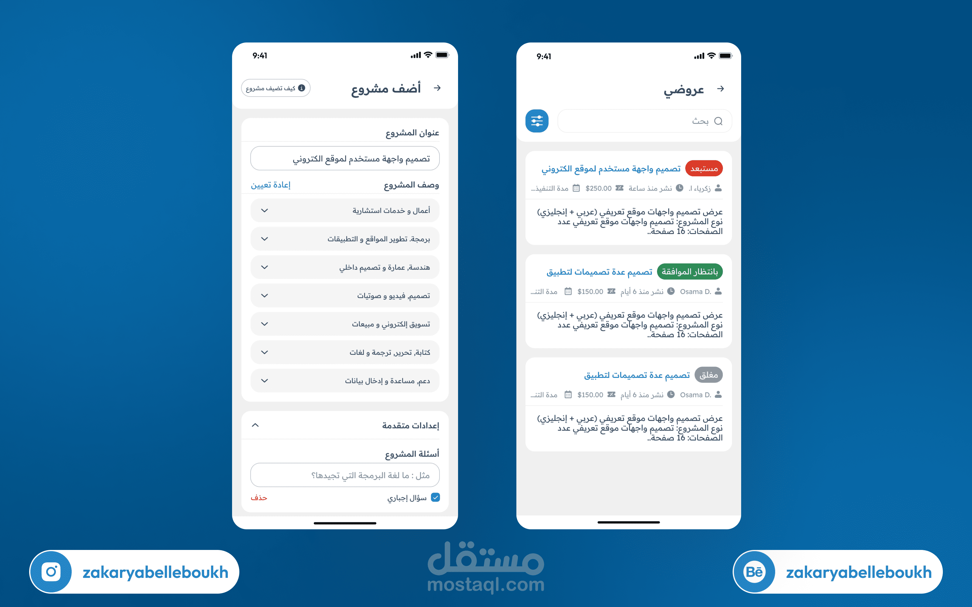 As a UI/UX designer, I imagined what the "Mostaql.com | مستقل" platform could look like if it had its own mobile application