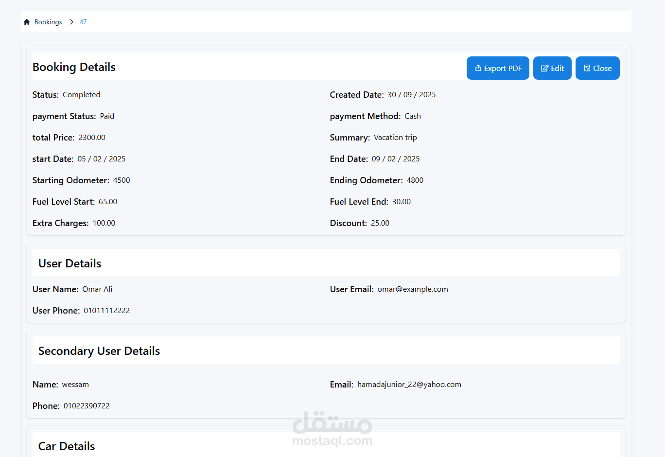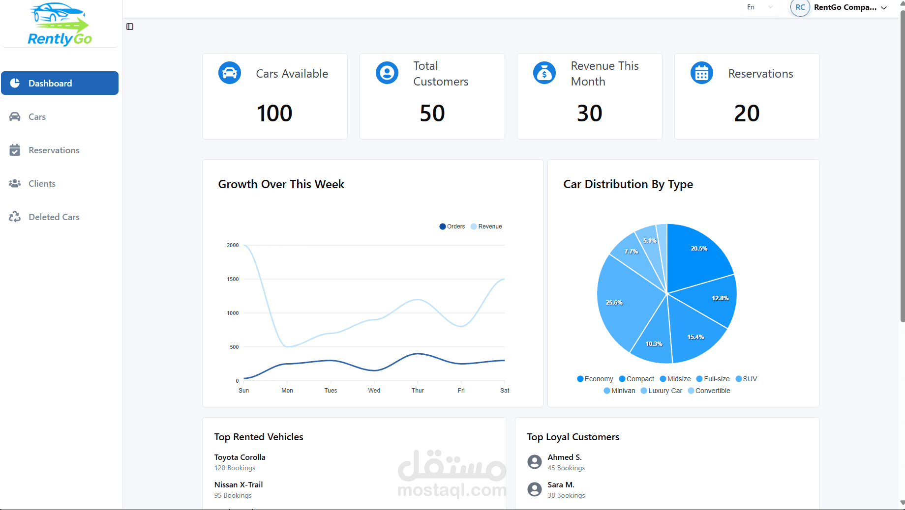 عملت على تطوير الواجهة الخلفية لمنصة إلكترونية لتأجير السيارات، حيث تسمح المنصة بإنشاء حسابات منفصلة لكل من شركات التأجير والمستأجرين، مع إدارة عمليات الحجز والتأجير بشكل فعّال وآمن.