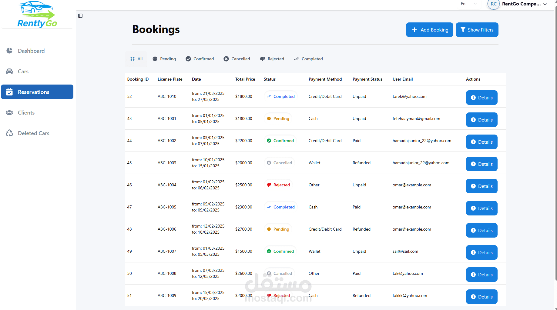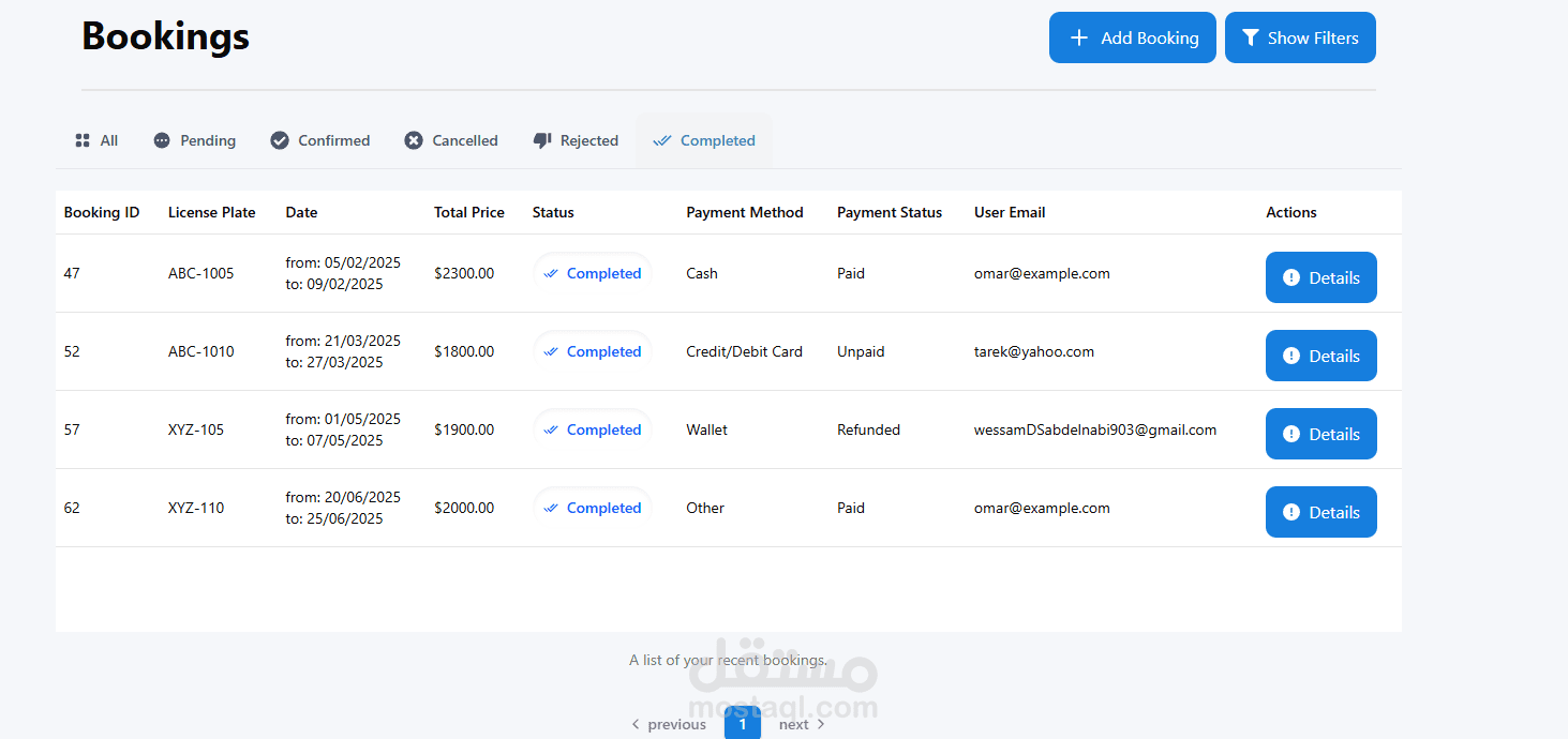 تنفيذ منطق حجز السيارات والتأكد من التوافر، وتخزين وتتبع السجلات بدقة