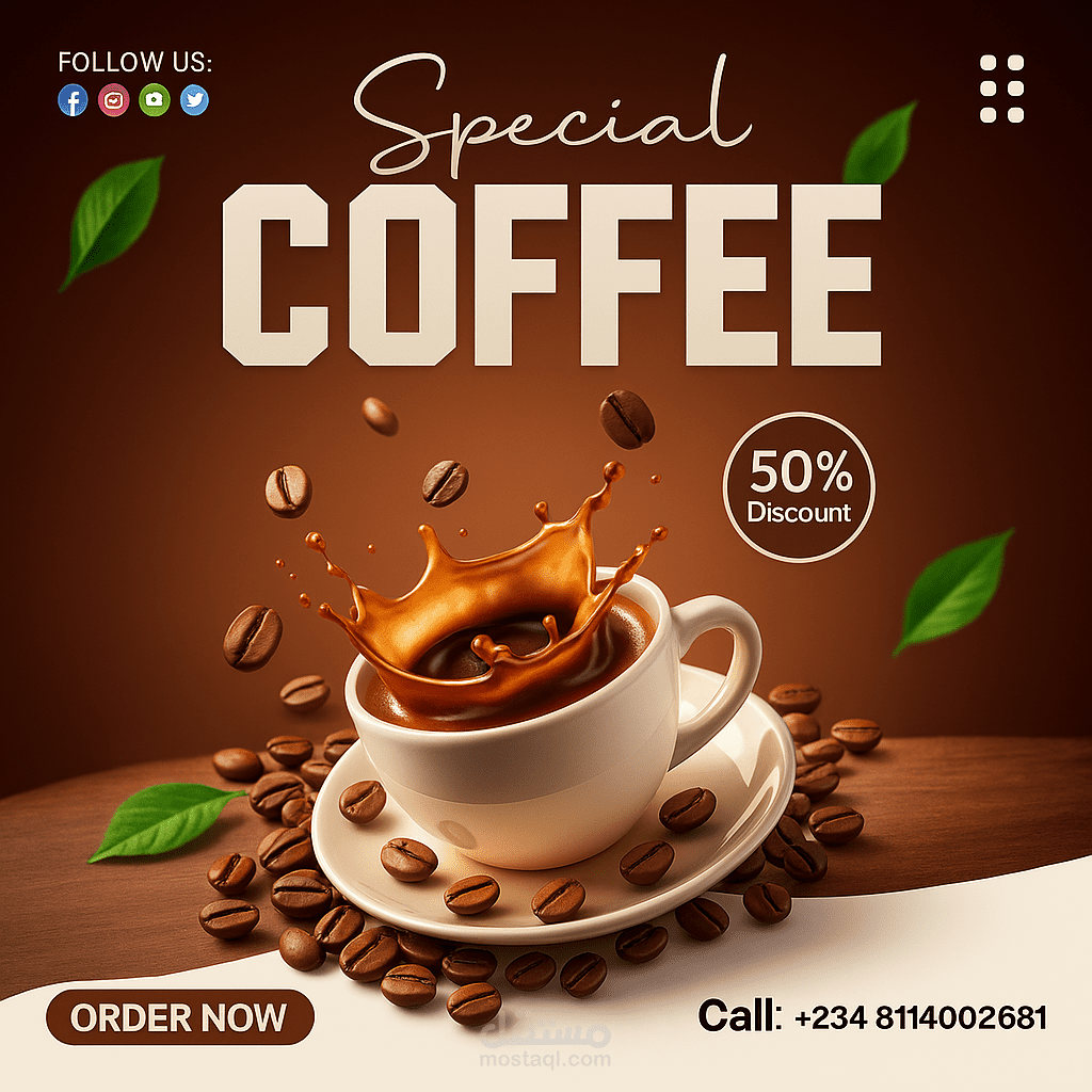 تصميم إعلان سوشيال ميديا لمنتج قهوة