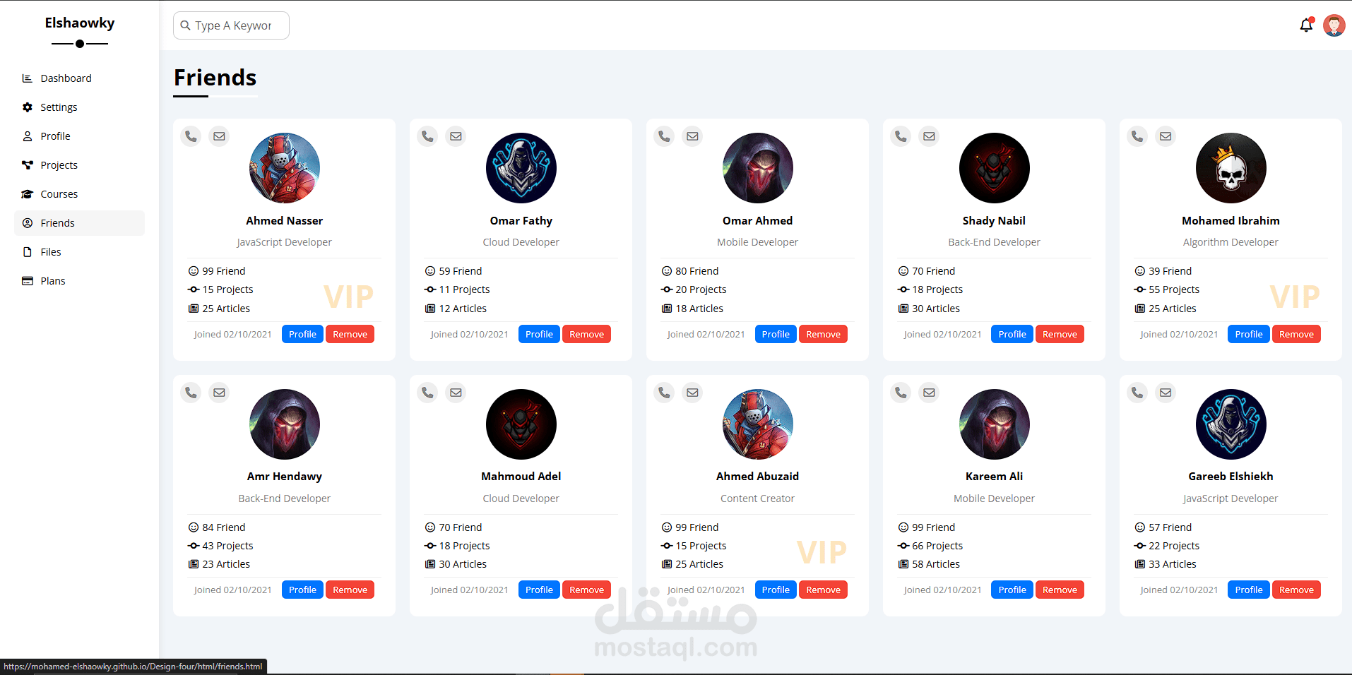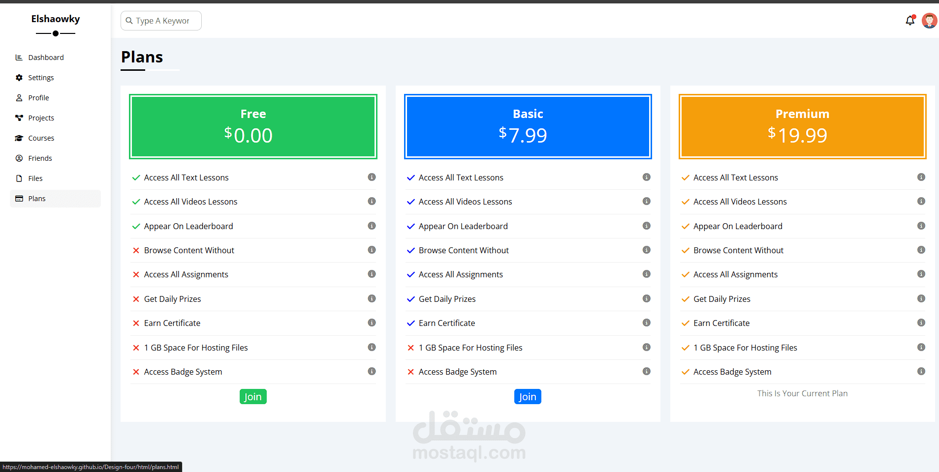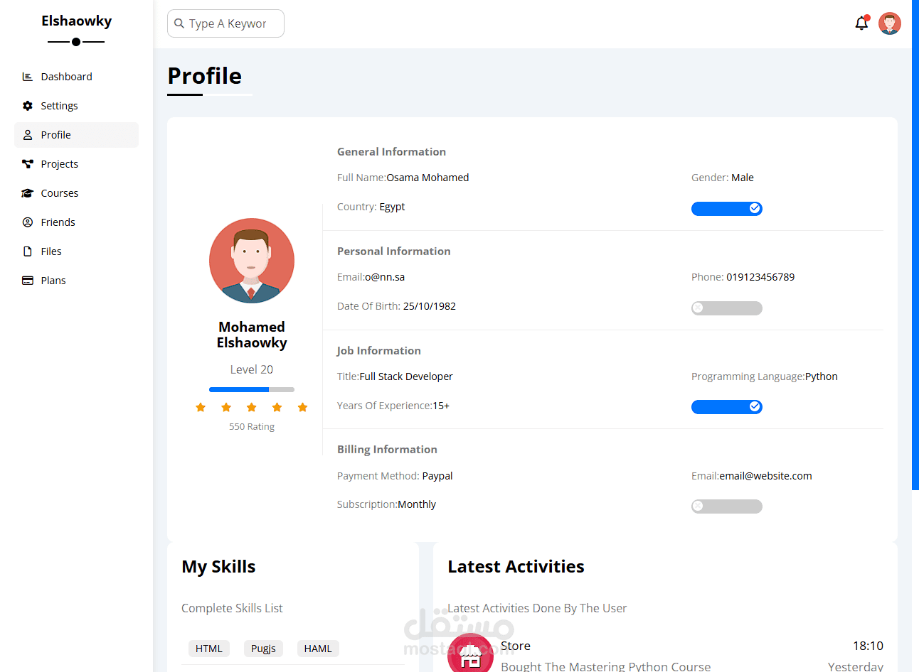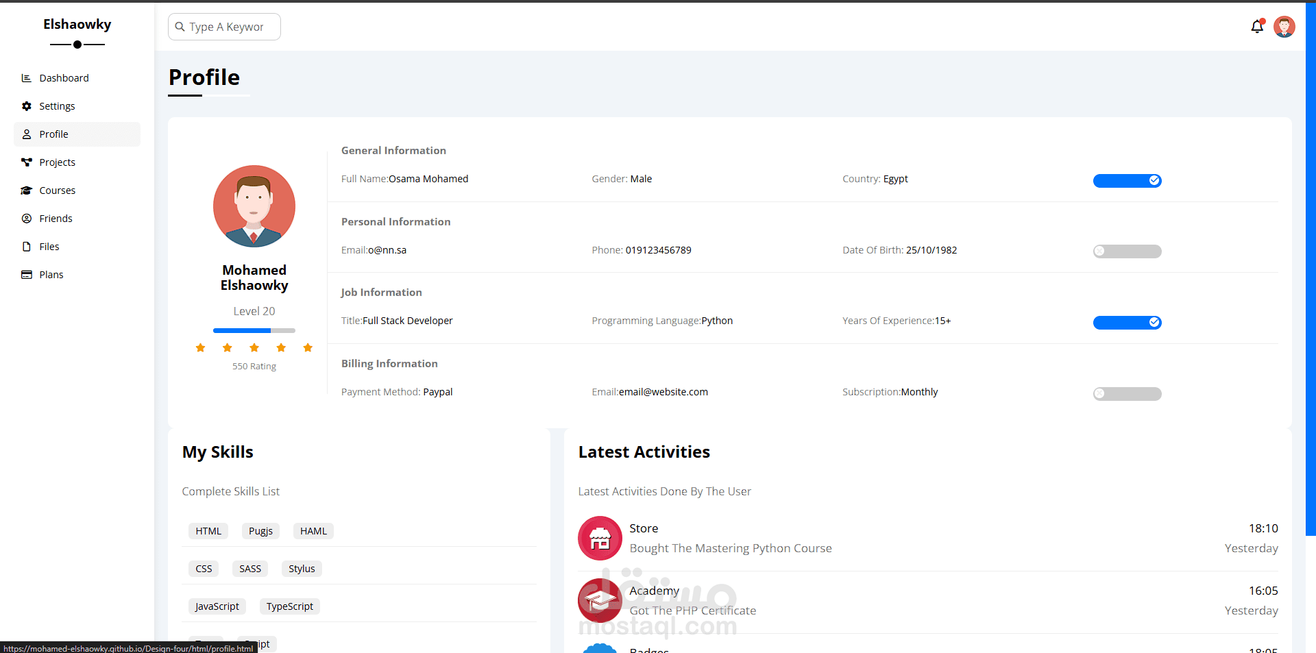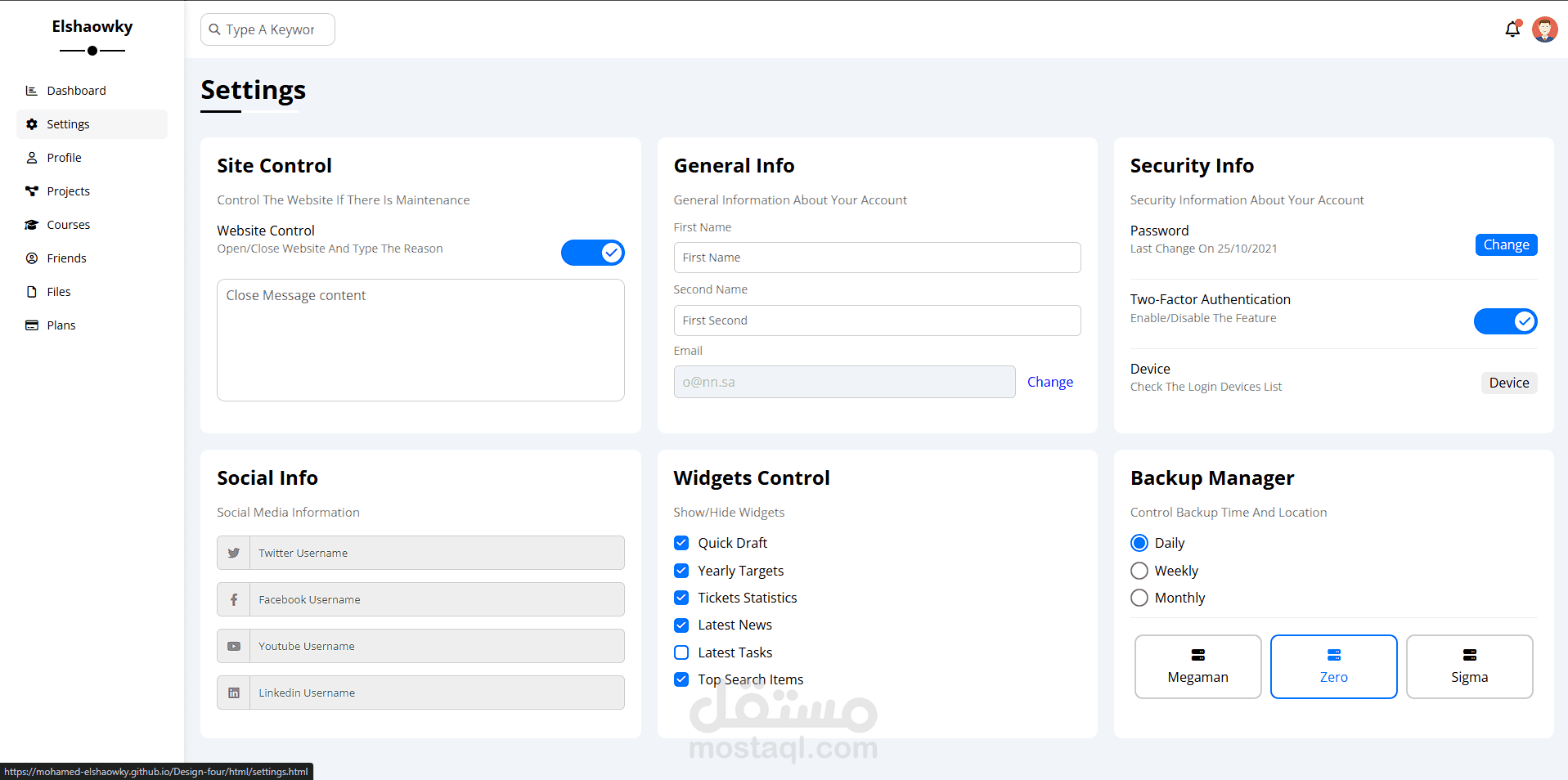 قمت بتصميم وتكويد واجهة متعددة الصفحات تشمل:
