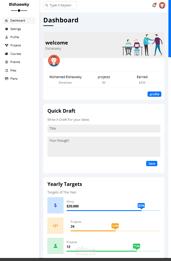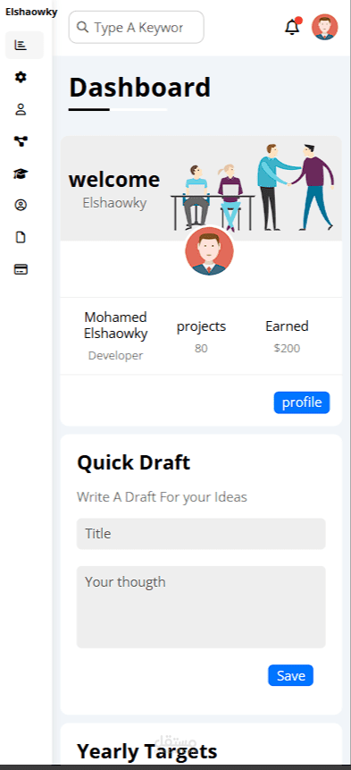 لوحة تحكم (Dashboard) تم تنفيذها باستخدام HTML5 وCSS3 فقط دون أي مكتبات خارجية، بهدف إبراز مهاراتي في بناء واجهات مستخدم مرنة ونظيفة.