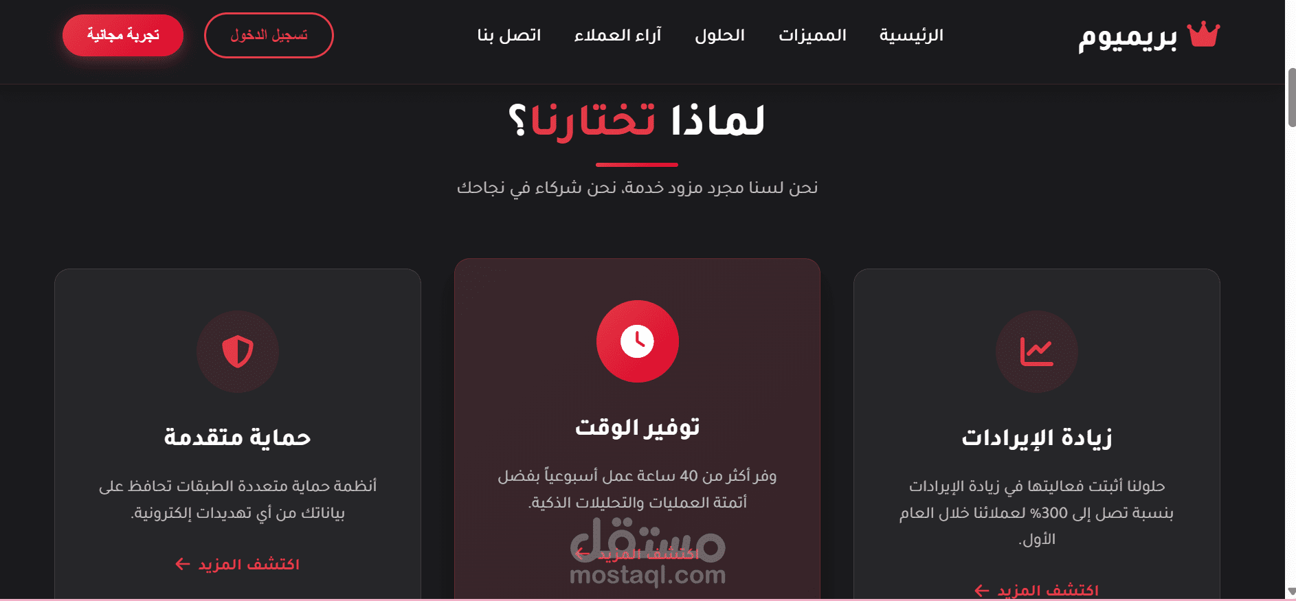 قمتُ بتصميم موقع إلكتروني احترافي لشركة عربية متخصصة في التسويق الرقمي باستخدام HTML وCSS وJavaScript. تميز الموقع بتصميم حديث وجذاب يعكس هوية الشركة ويجذب العملاء المحتملين. ركزت على جعل الموقع متجاوبًا ليعمل بسلاسة على مختلف الأجهزة والشاشات، مع إضافة تأثيرات تفاعلية باستخدام JavaScript لتحسين تجربة المستخدم. كما ضمنت تنظيم المحتوى بشكل واضح وسهل التصفح، مما يساعد الزوار على الوصول للمعلومات والخدمات بسرعة وسلاسة.