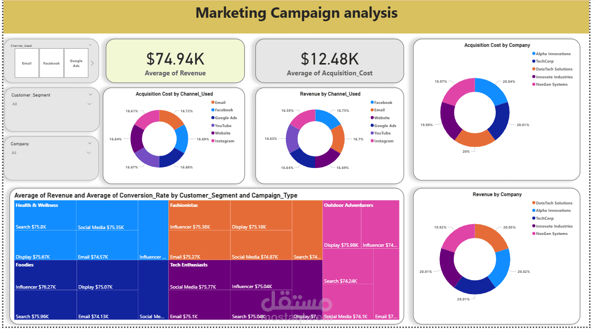 لقد قمت بإنشاء لوحة معلومات تُظهر أداء الحملات على مدار الأشهر الستة الماضية لأحد العملاء على Freelancer.