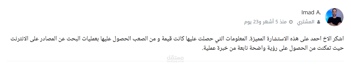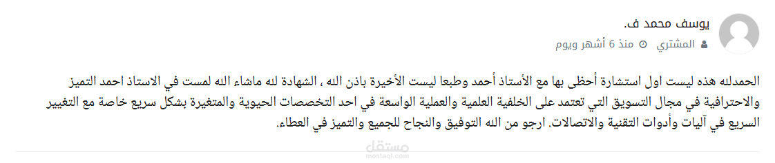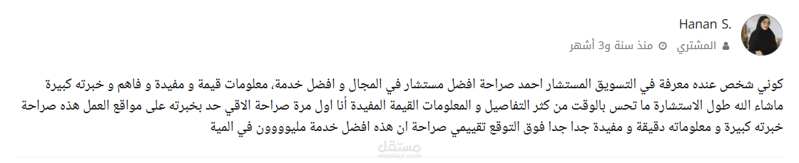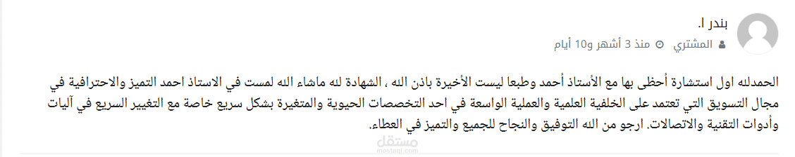 كانت هذه تقييمات لبعض عملائي في خدمة الاستشارات التسويقية التي اقدمها في موقع خمسات