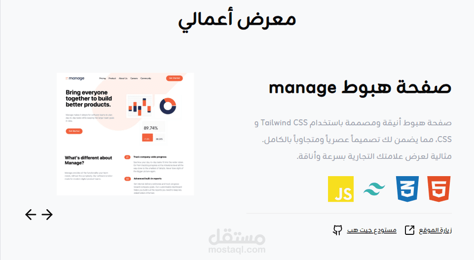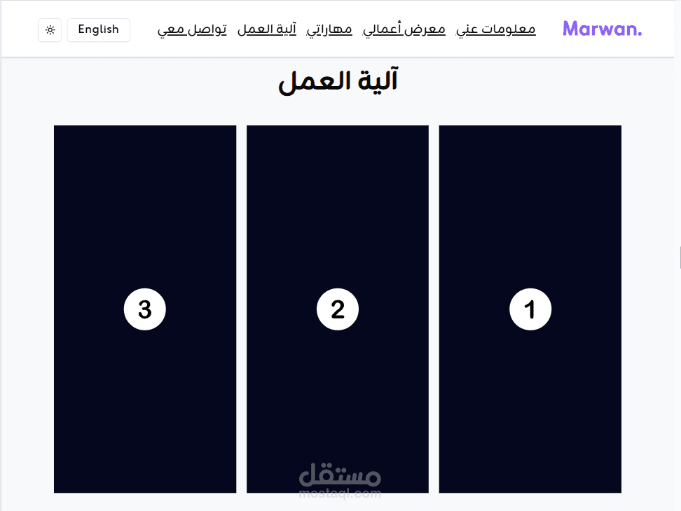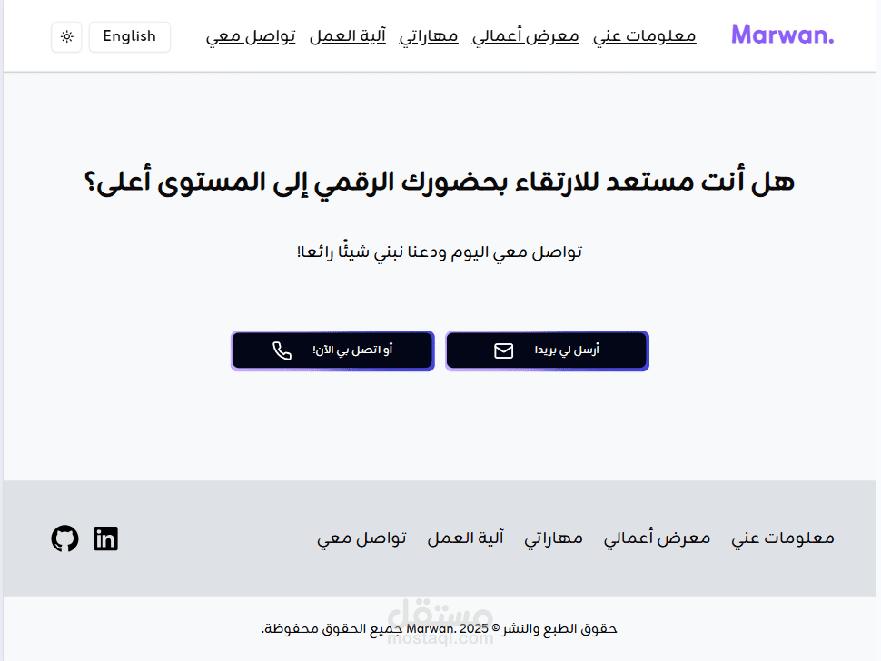 موقع شخصي يعرض أعمالي كمطور ويب، تم تطويره باستخدام React وNext.js وTailwind CSS.