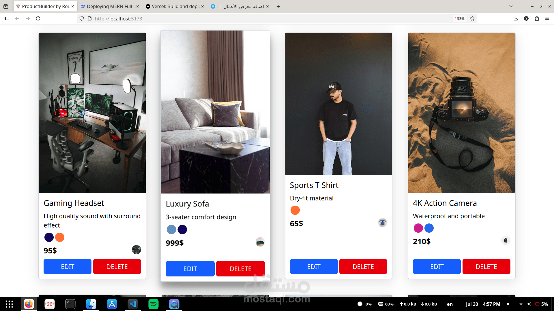طورت بشكل فردي تطبيق ويب كامل (Full Stack) يتيح للمستخدمين إضافة، تعديل، حذف، واستعراض المنتجات من خلال واجهة تفاعلية وسهلة الاستخدام.