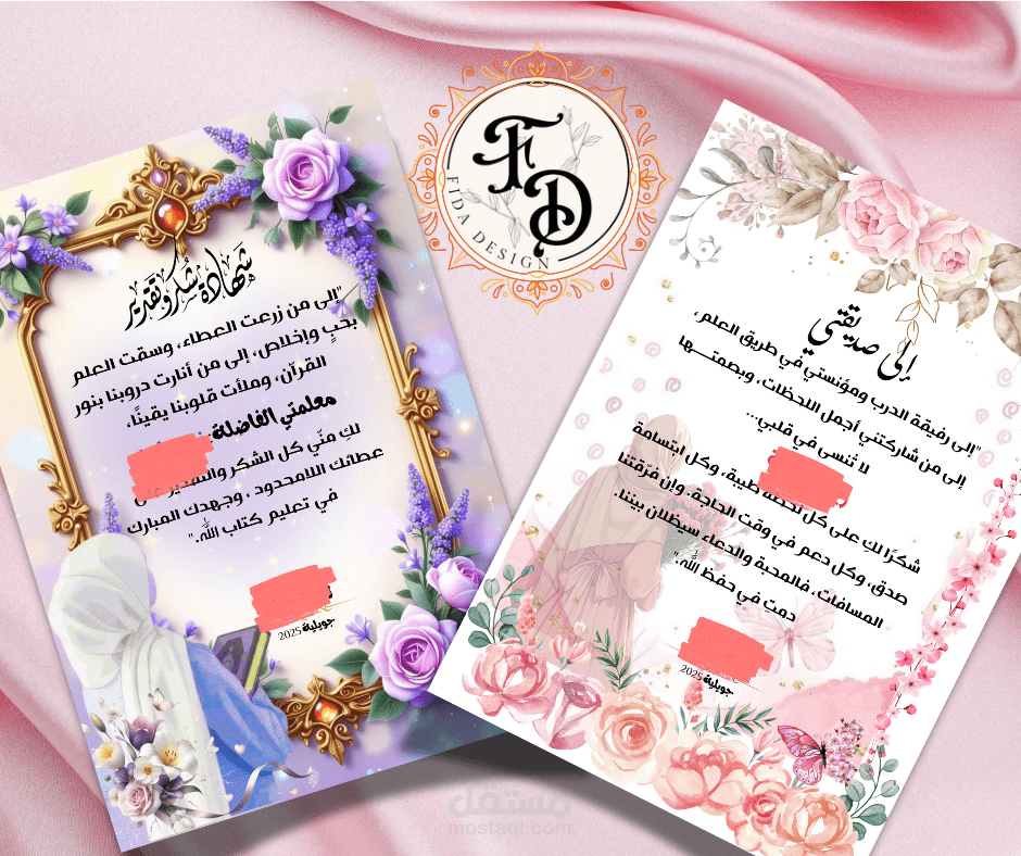 و شهادات خاصة، بتصميم حصري، بتامان جذابة بسيطة أو كثيفة العناصر حسب الذوق.