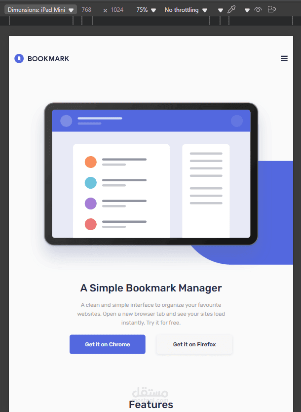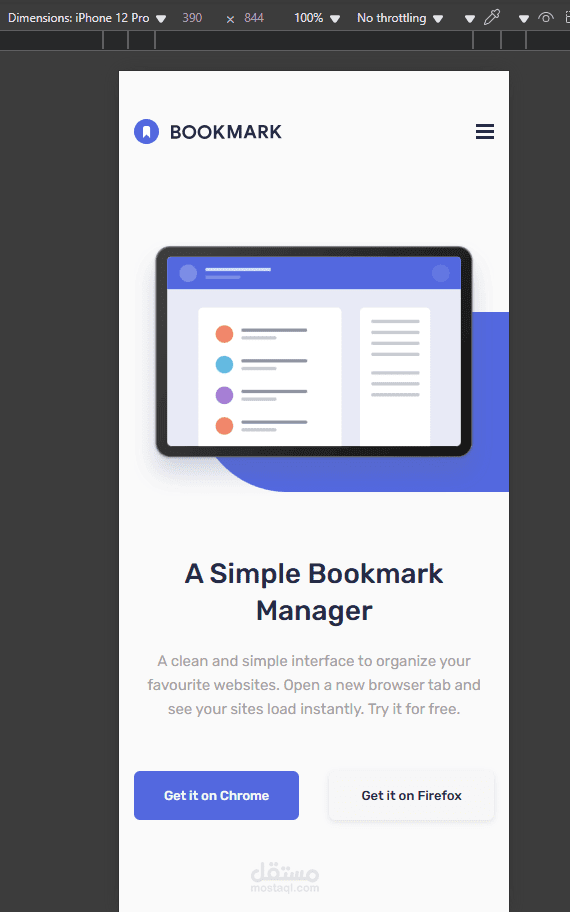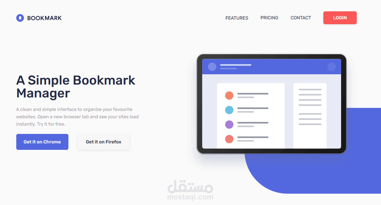صفحة هبوط حديثة وعصرية مصممة لترويج إضافة متصفح لإدارة الإشارات المرجعية. الصفحة متجاوبة بالكامل وتعمل بكفاءة على جميع الأجهزة. يتم ضبط المحتوى والعناصر تلقائيًا بما يناسب حجم الشاشة.