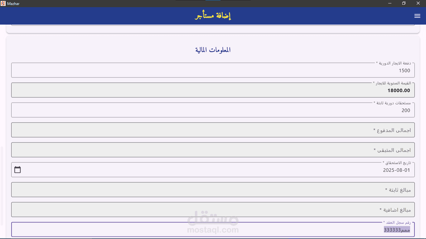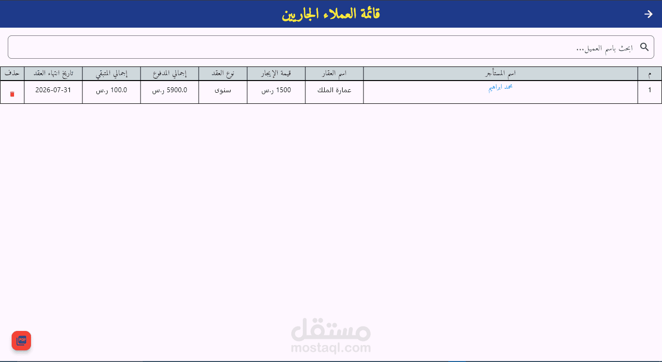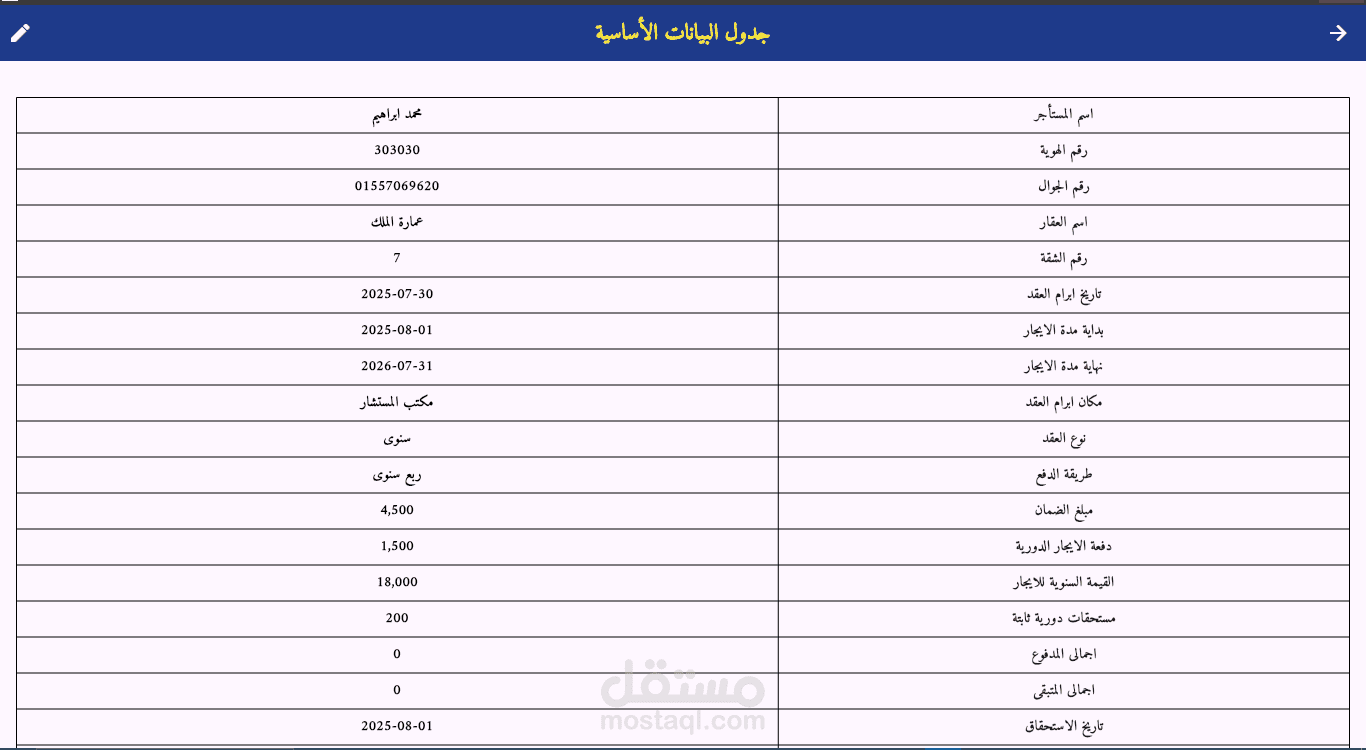 الرجوع الى بيانات العقد الخاص بالمستاجر مع امكانية التعديل عليها فى اي وقت.