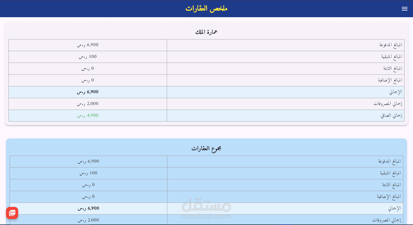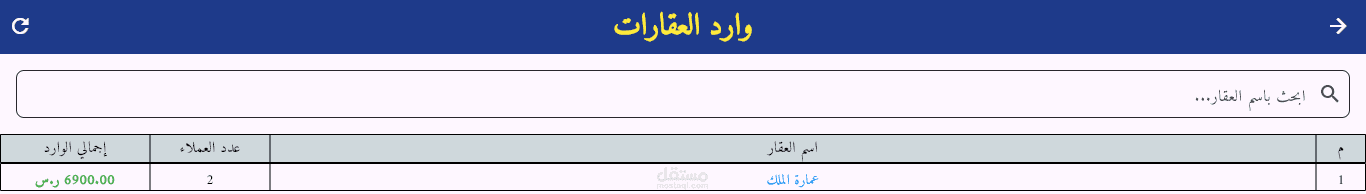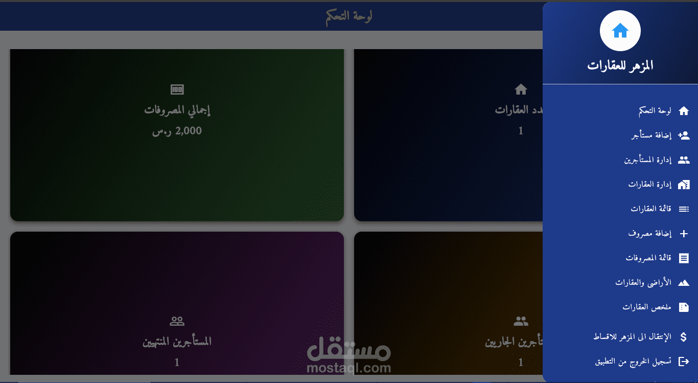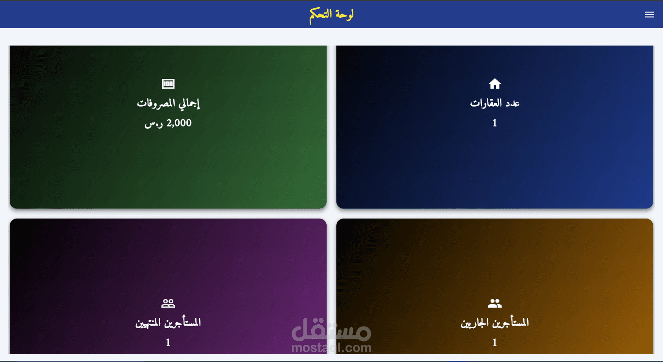 لوحة تحكم تعرض كل البيانات العقارات و المستاجرين فى صورة مختصرة