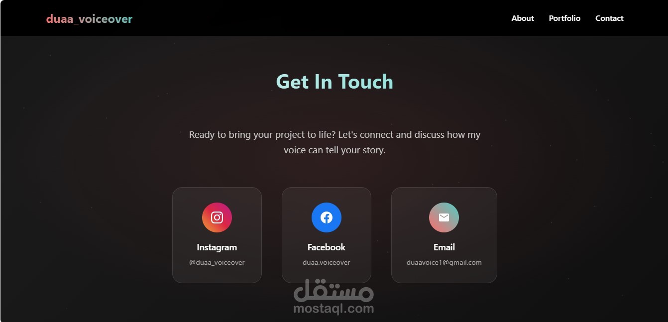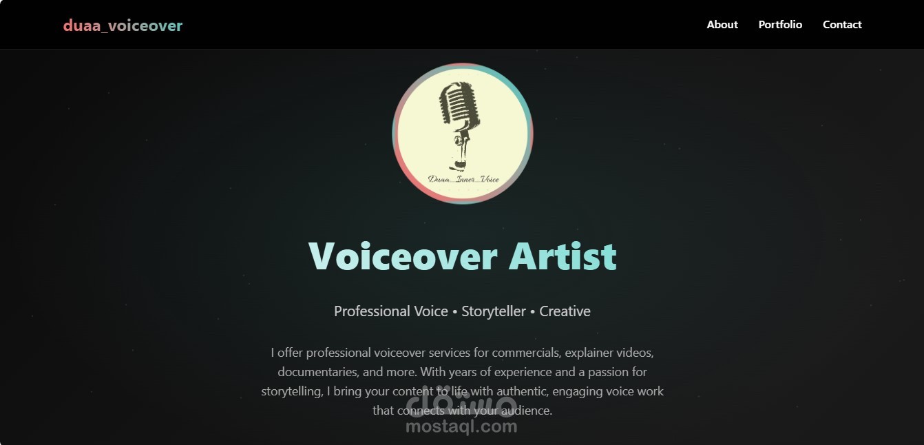 موقع بورتفوليو شخصي يعرّف بك وبأعمالك . الموقع مصمم باستخدام HTML، CSS، وJavaScript، مع تنظيم احترافي وسلس يركز على تجربة المستخدم.