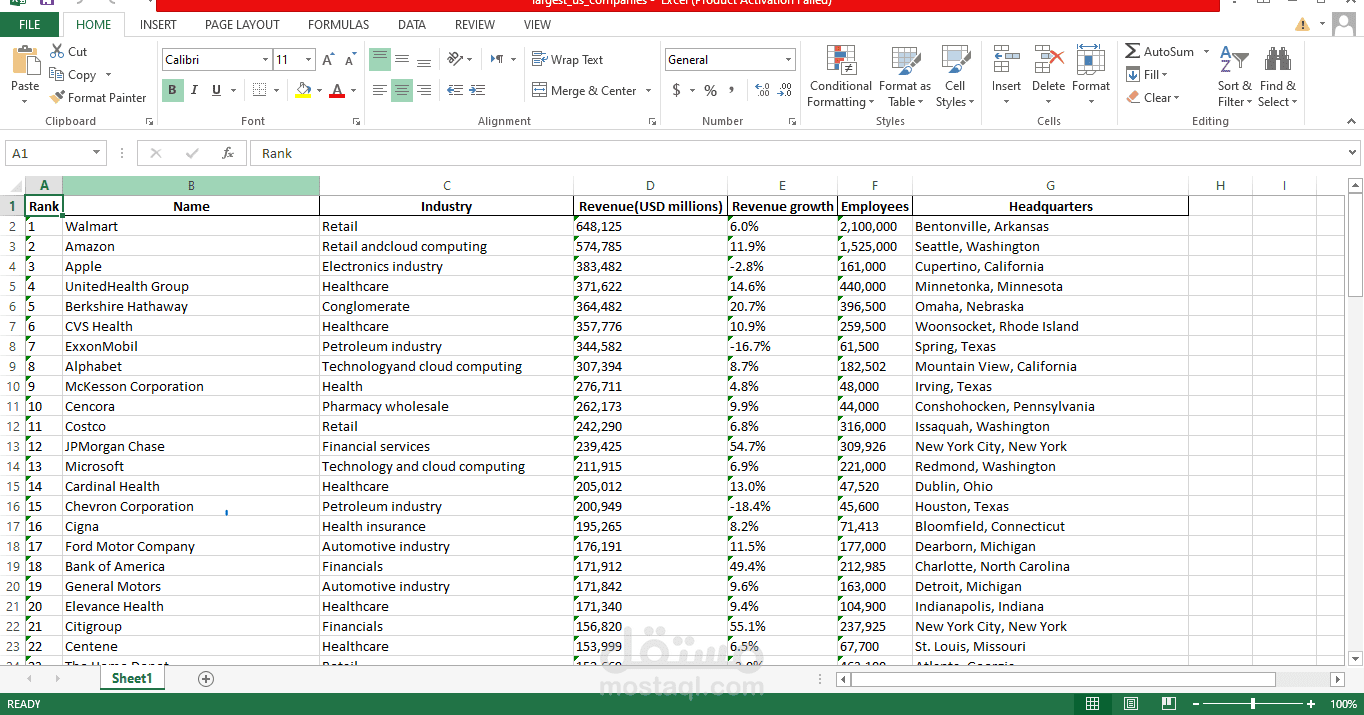 أنشأت سكريبت بلغة Python باستخدام مكتبة BeautifulSoup لجمع بيانات أكبر الشركات في أمريكا من موقع ويكيبيديا، وتنظيمها داخل ملف Excel.